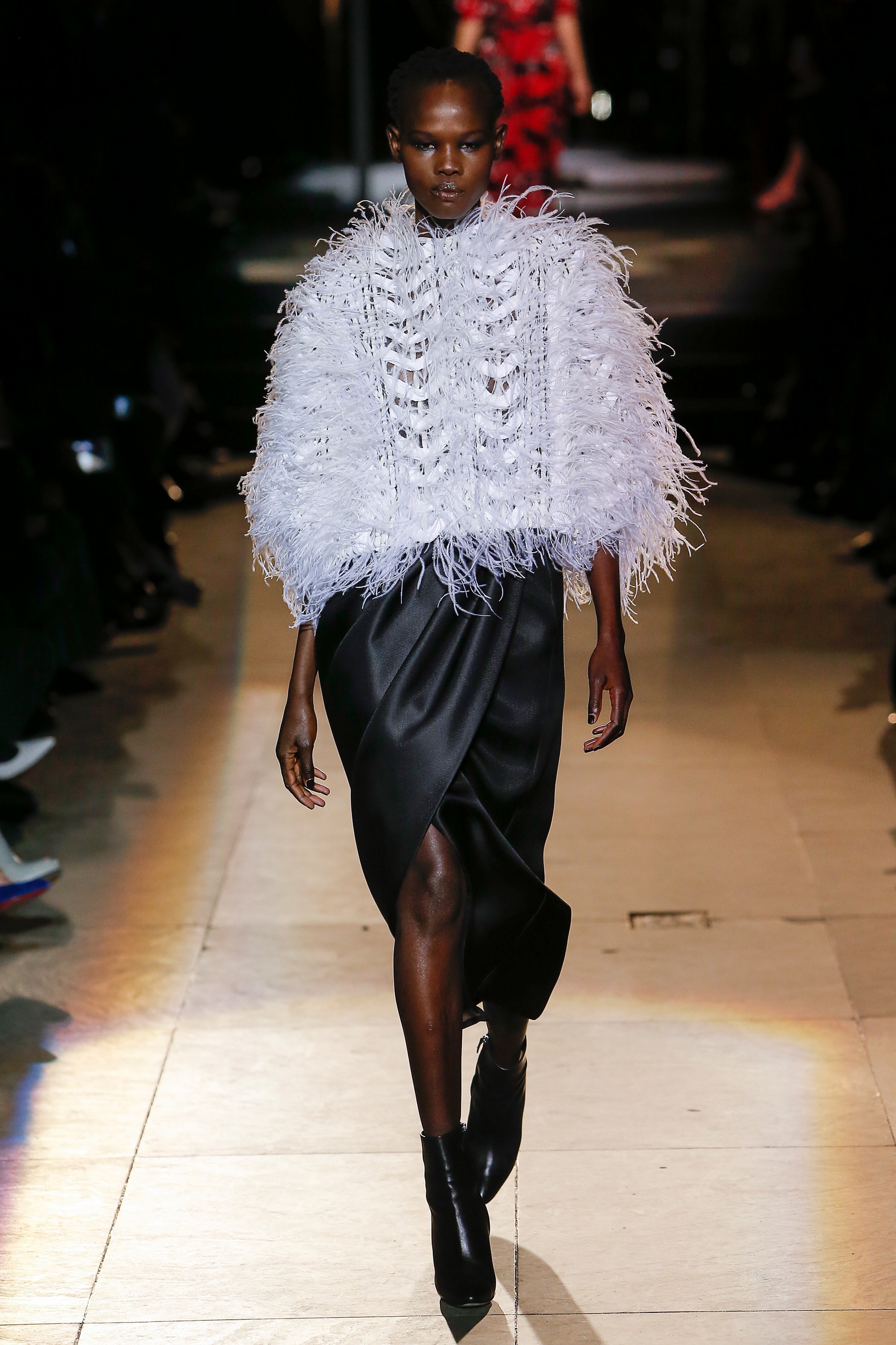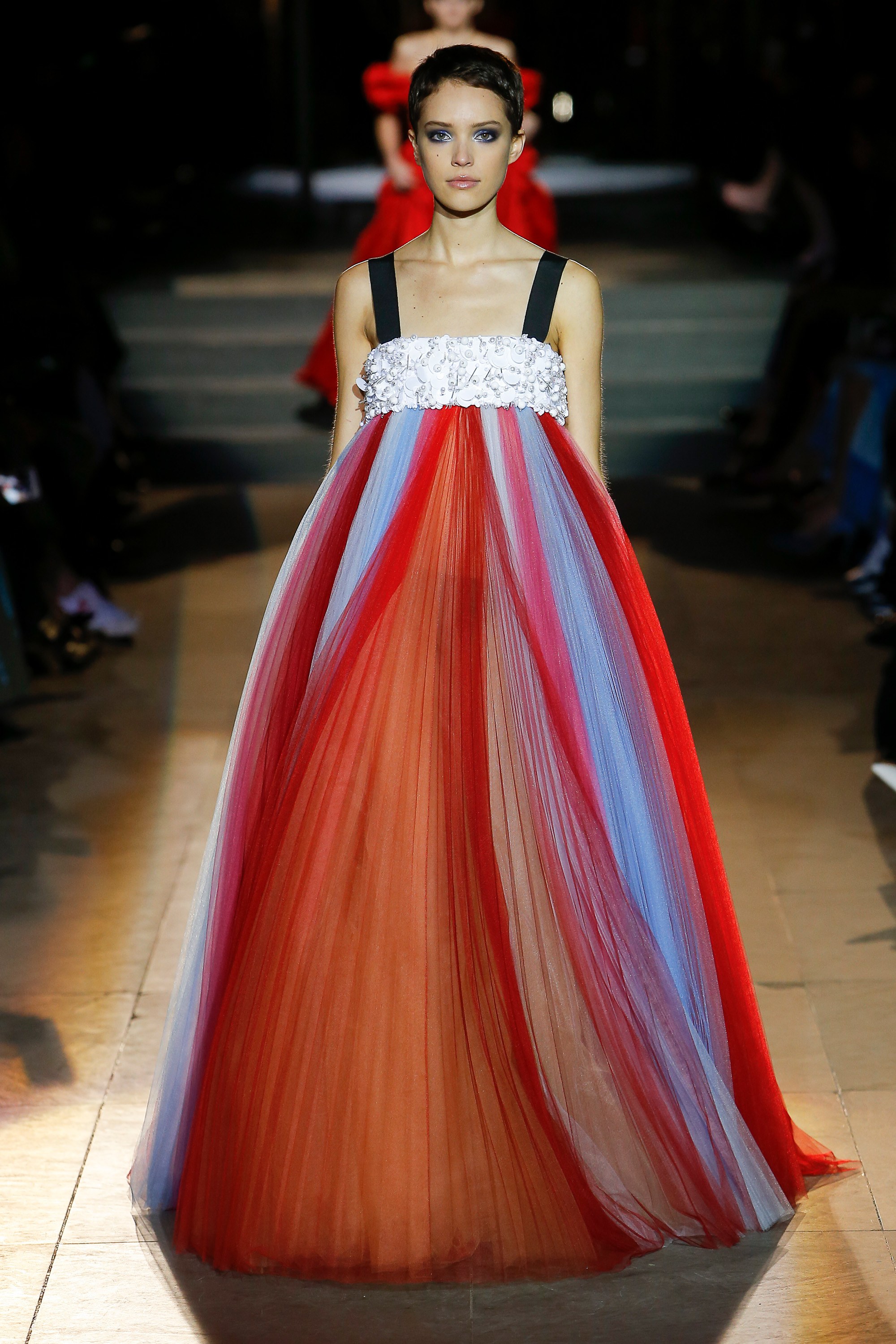 Details: Taffeta ball skirts, crisp white shirts, beaded fringe, feathers, bold prints, pockets, and rainbow tulle.