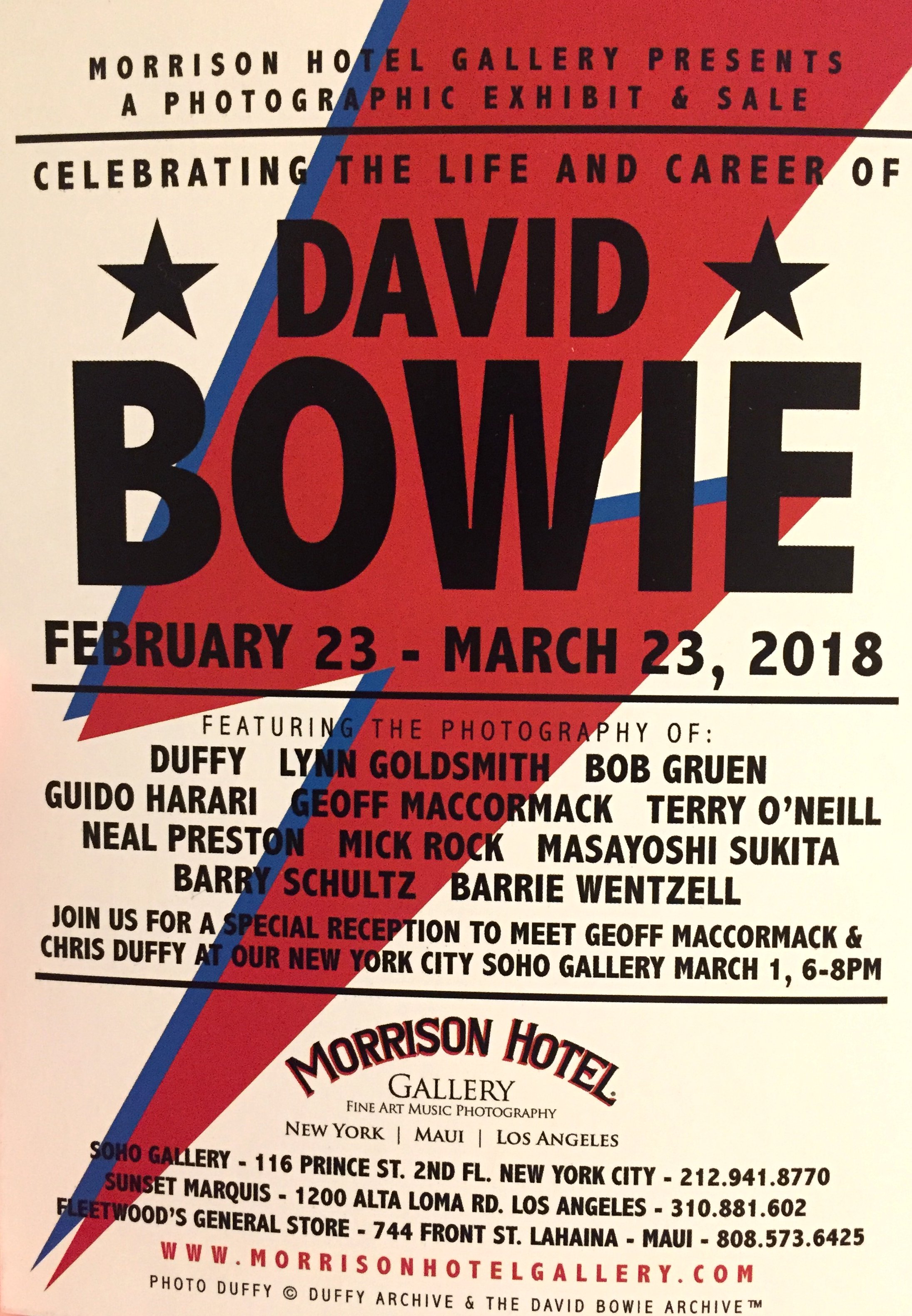 On a cold and rainy New York City evening Getting GorJess correspondent Kathryn McGrath ventured out to the Morrison Hotel Gallery to peek at the newest photographic exhibit celebrating the Life and Career of David Bowie.