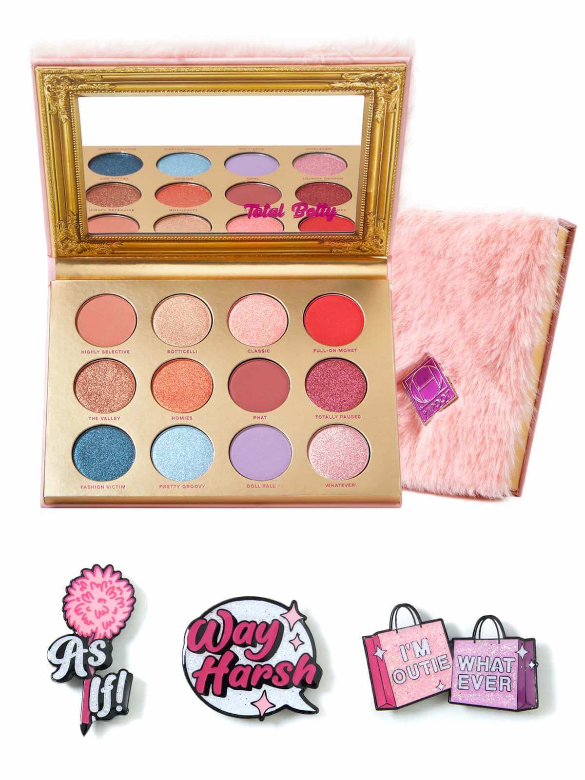 Now being a 90’s gal myself and loving all things nostalgic, I generally adore collabs like this one. Even though not every collection hits the mark on capturing the essence of a show, character or movie; it is always fun to be taken back to simpler times. Clueless was a film that left such a mark that it is still very relevant today, from the clothing trends to the quotable dialogue. Hipdot (which is both vegan and cruelty free) has done a beautiful job of creating a line of products that Cher, Dionne and Ty would fully approve of. The collection includes a colorful 12-pan eyeshadow palette (with the cutest names), a phat 4-shade blush palette and a glossy lip trio dedicated to all 3 of the main ladies of the film. There is even a box set including all of the products as well as a pink fluffy pen which just happens to be a Cher staple. But, I think my favorite item might just be the darling pin set featuring some Cher’s most iconic lines, such as her unforgettable “As if!”
