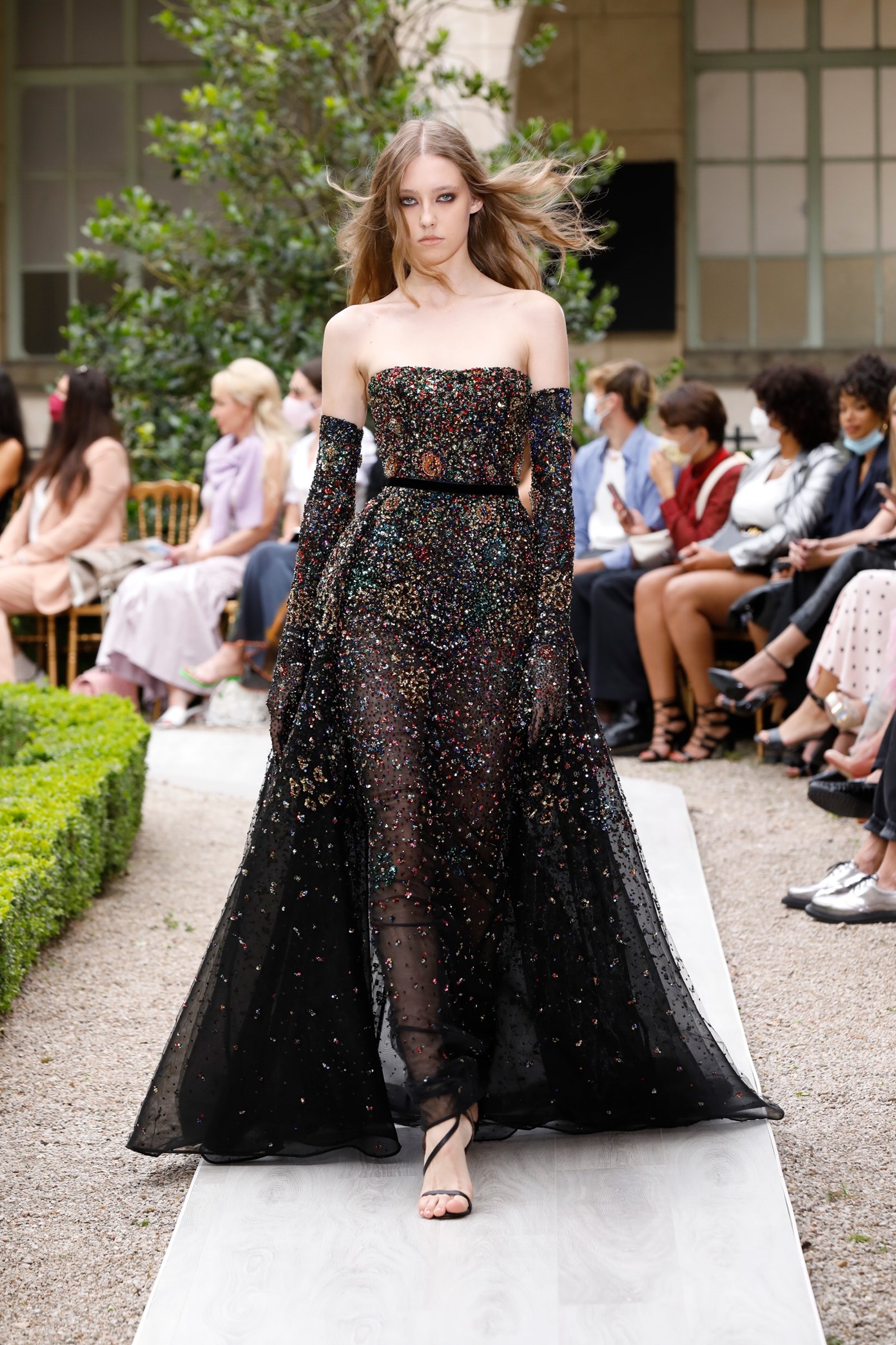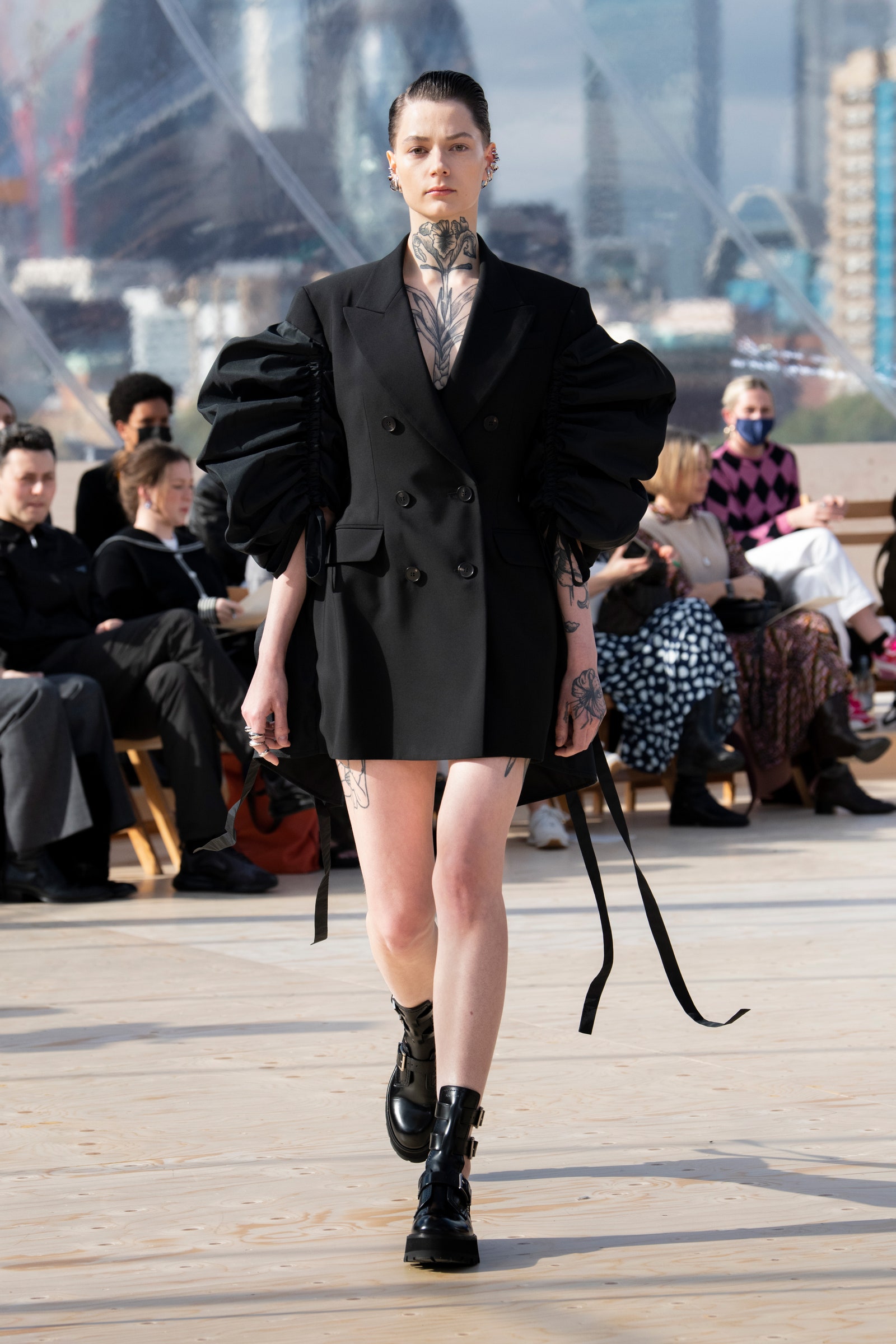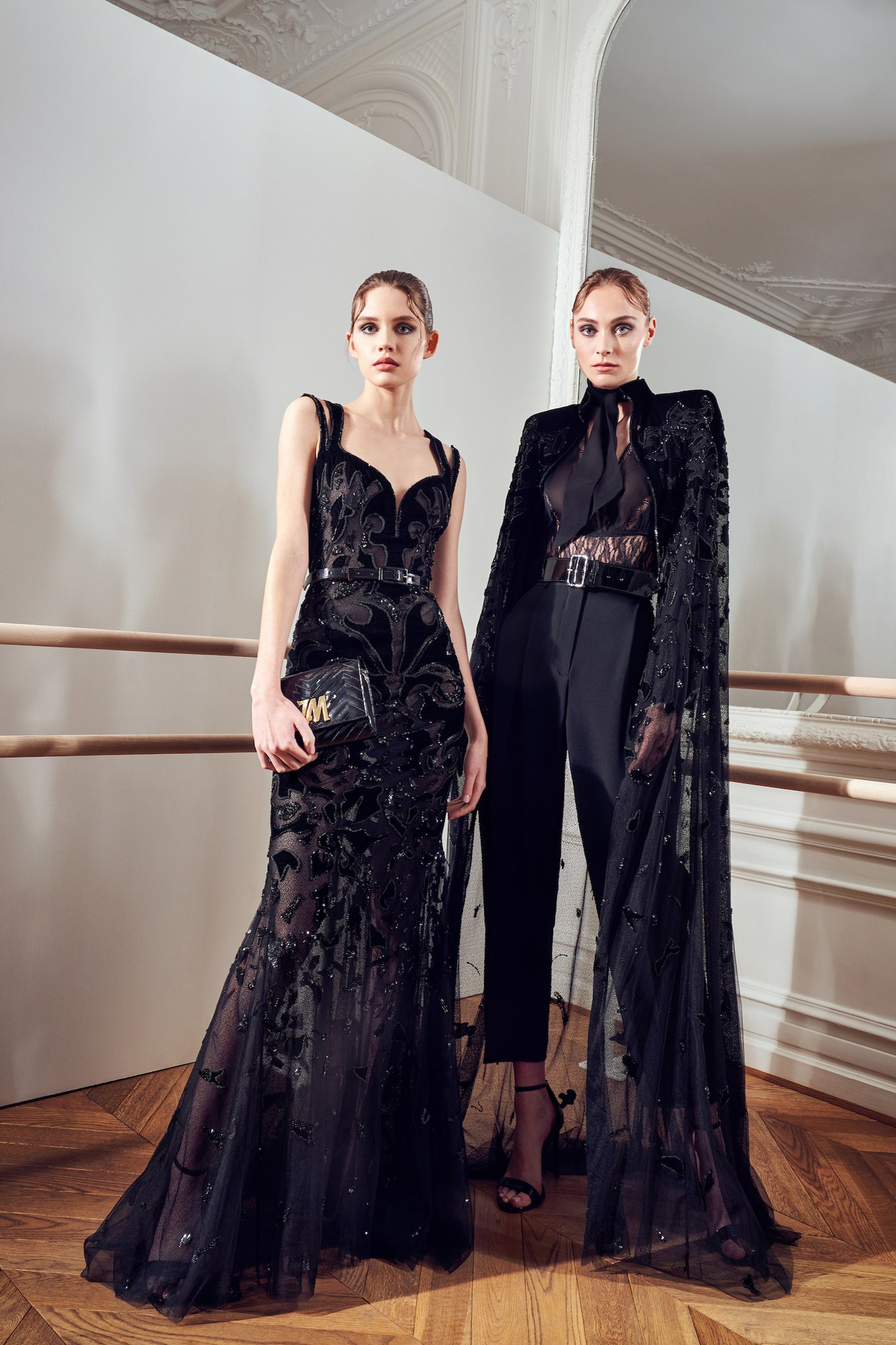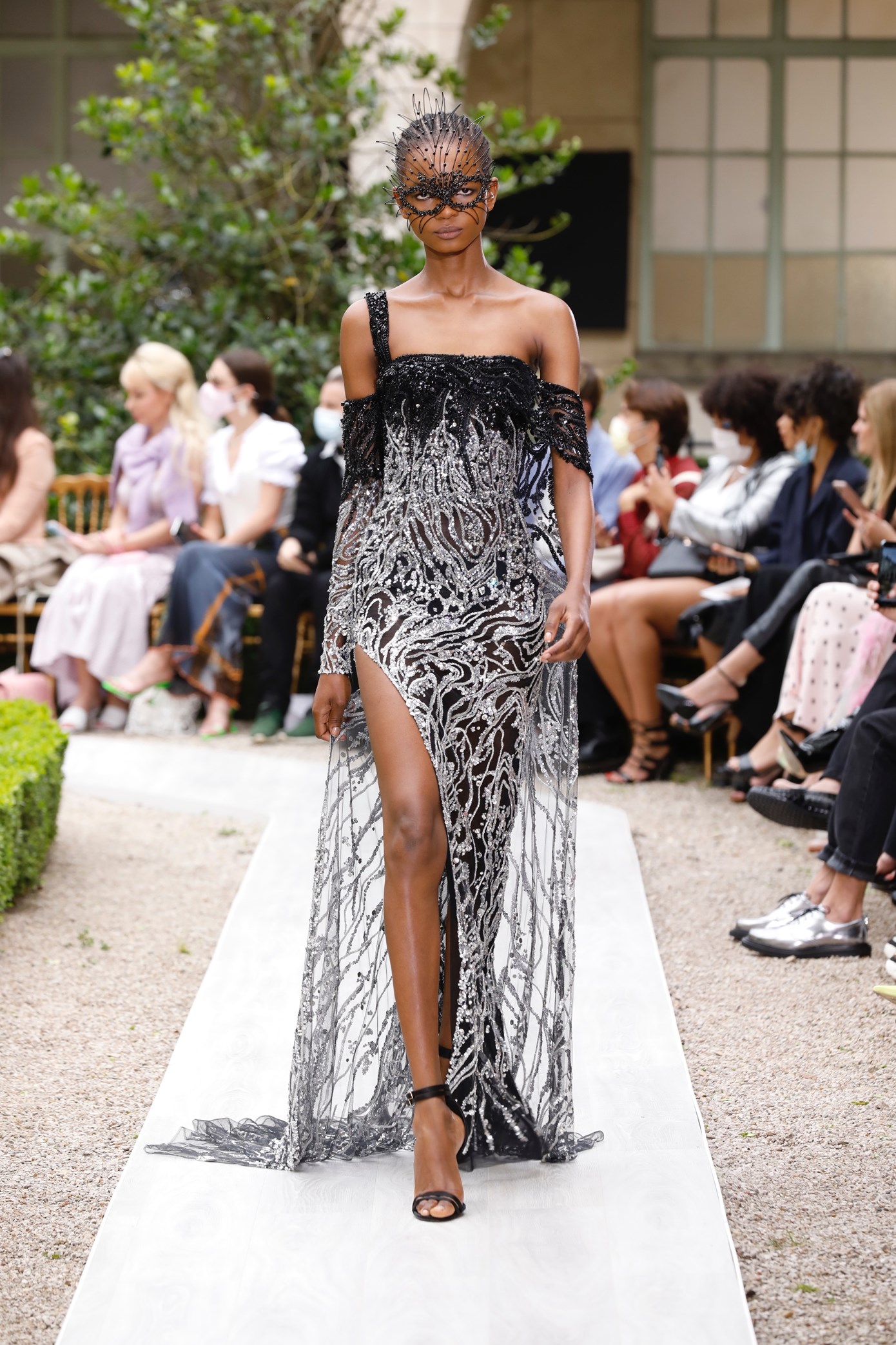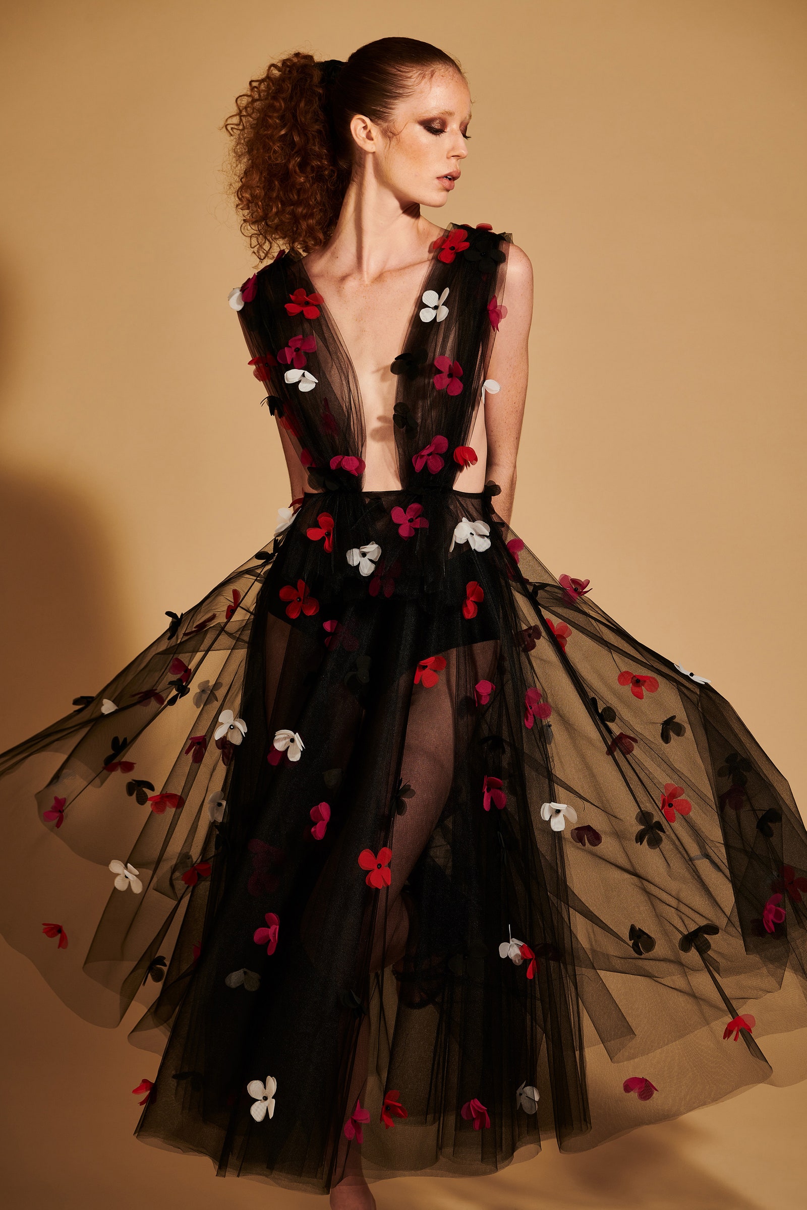 Details: Peplum Ruffles. Squiggly Vertical Layers. Silk Suits. Cutouts. Puff Sleeves, Ball Gowns. Wavy Tulle. Floral Applique. Eye Motifs.