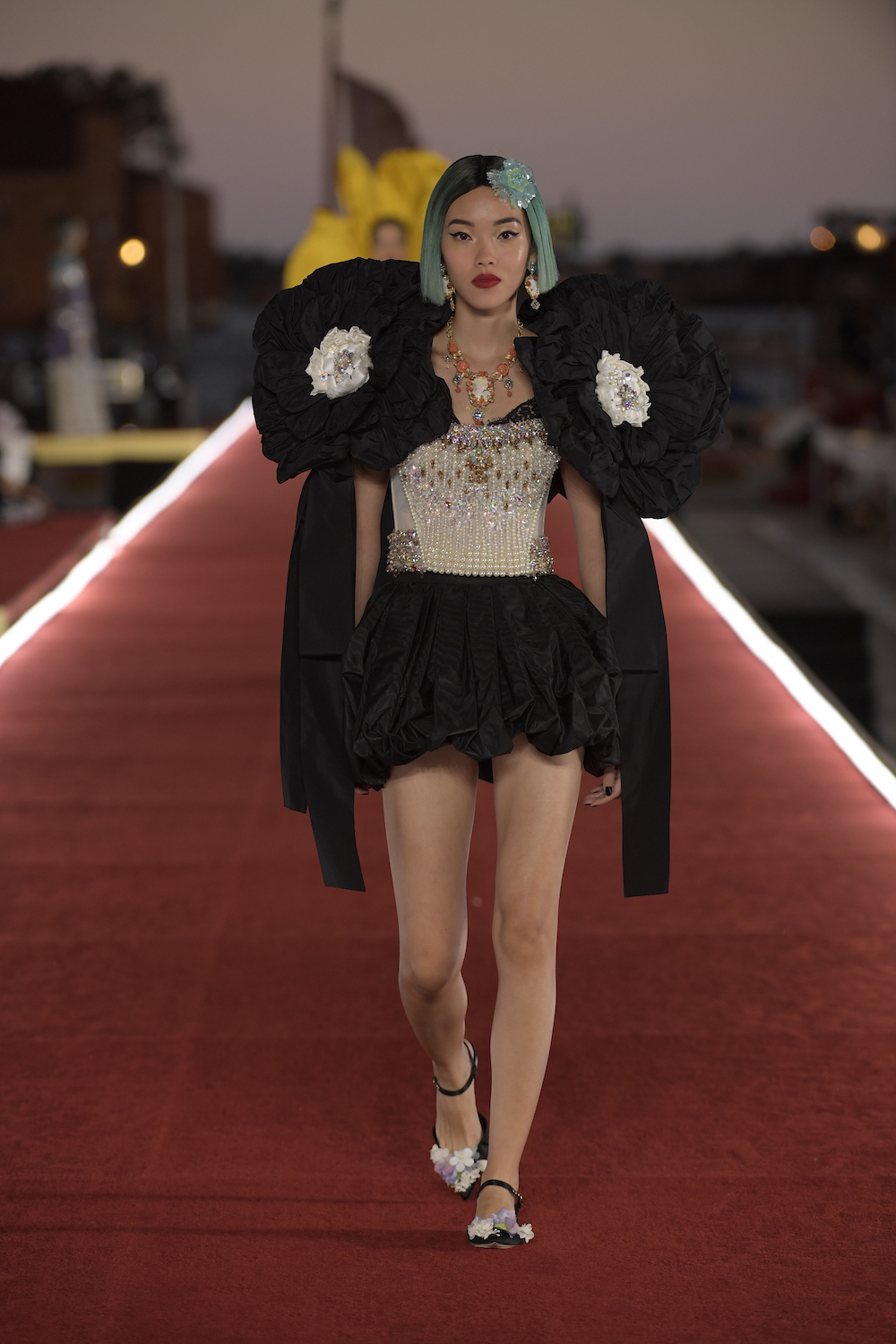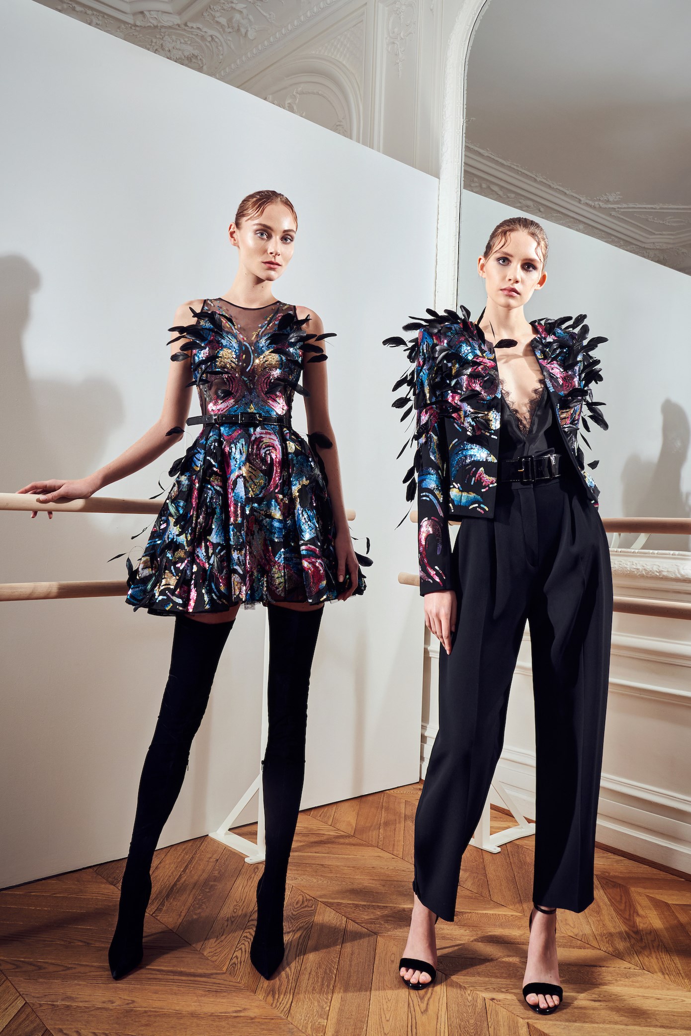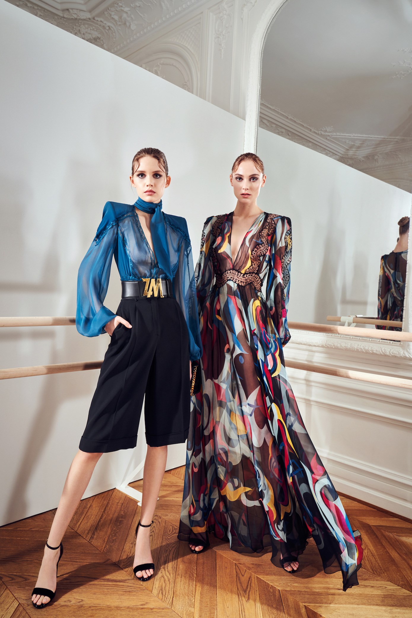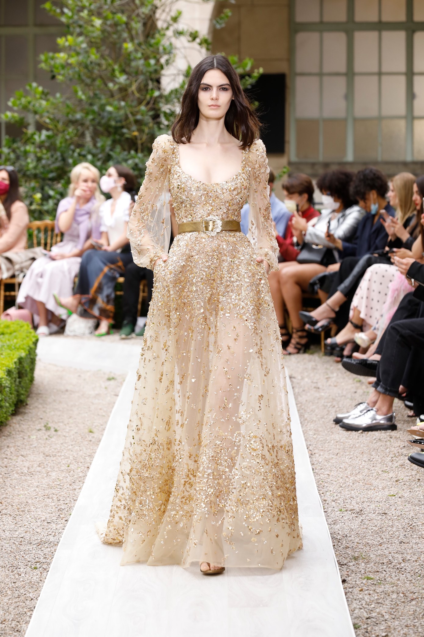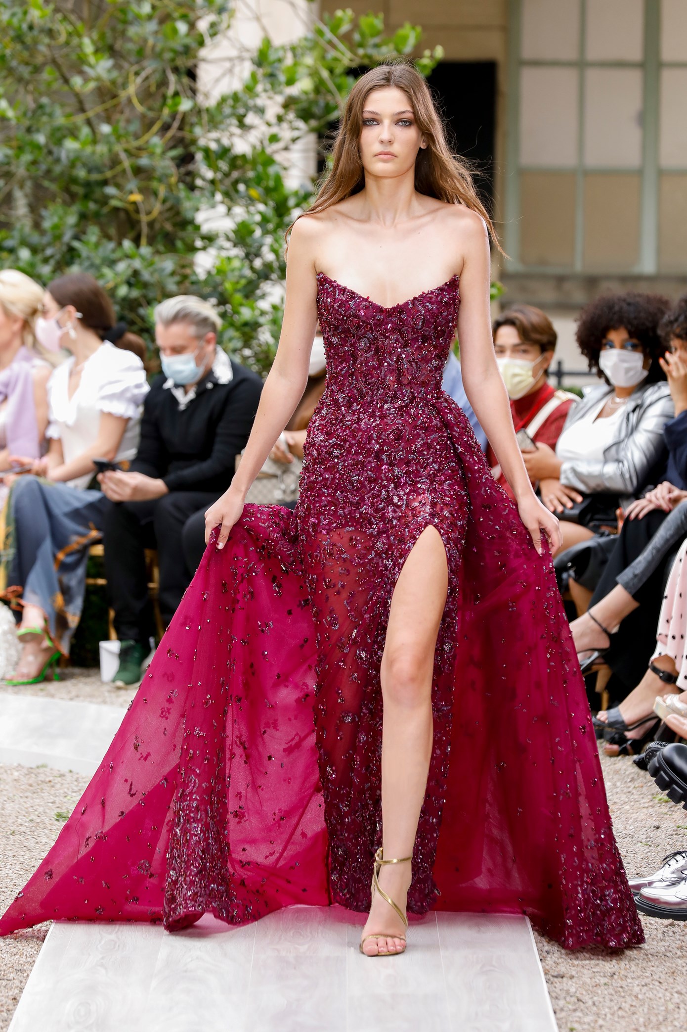 Details: Peplum Ruffles. Squiggly Vertical Layers. Silk Suits. Cutouts. Puff Sleeves, Ball Gowns. Wavy Tulle. Floral Applique. Eye Motifs.
