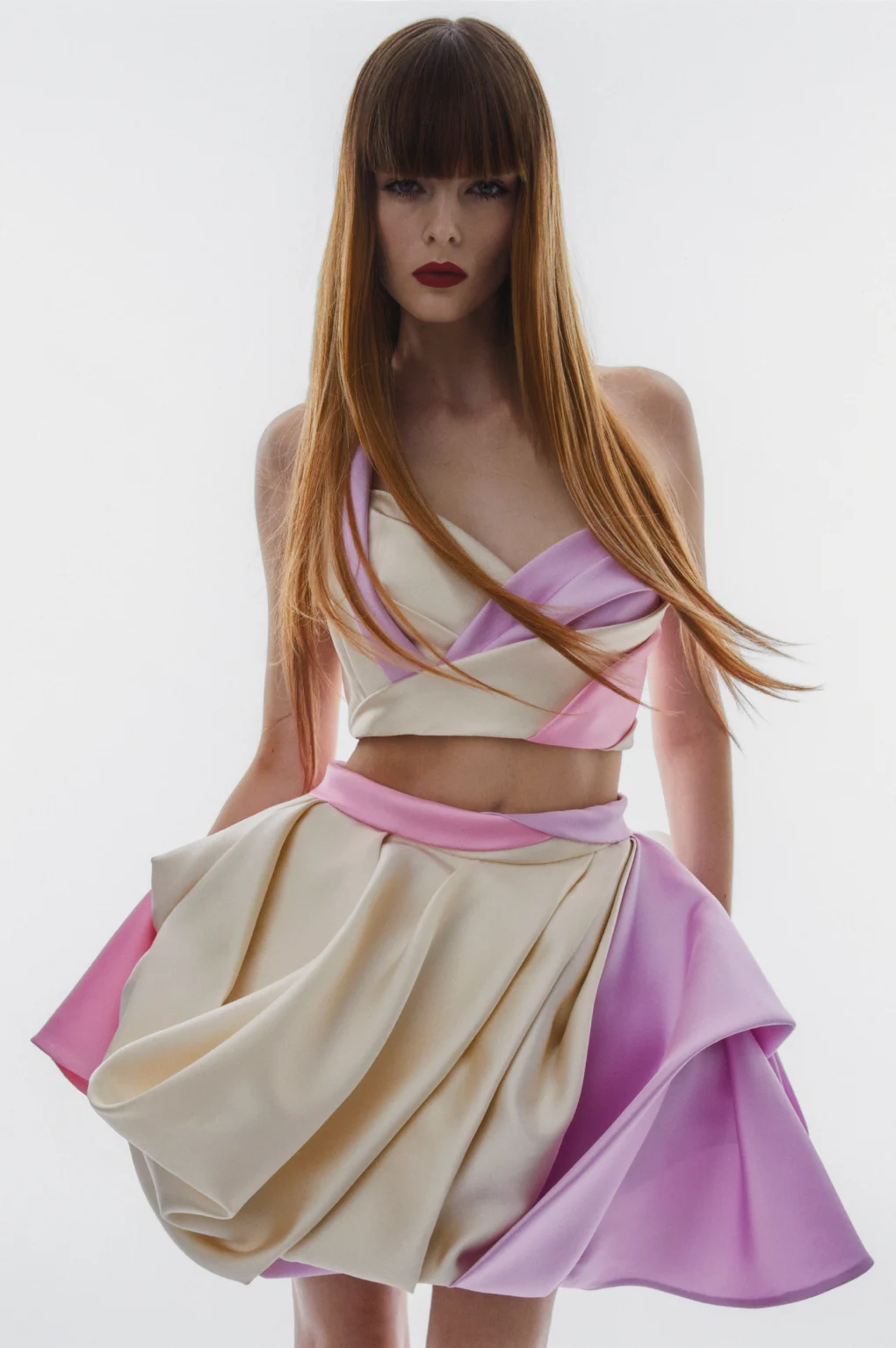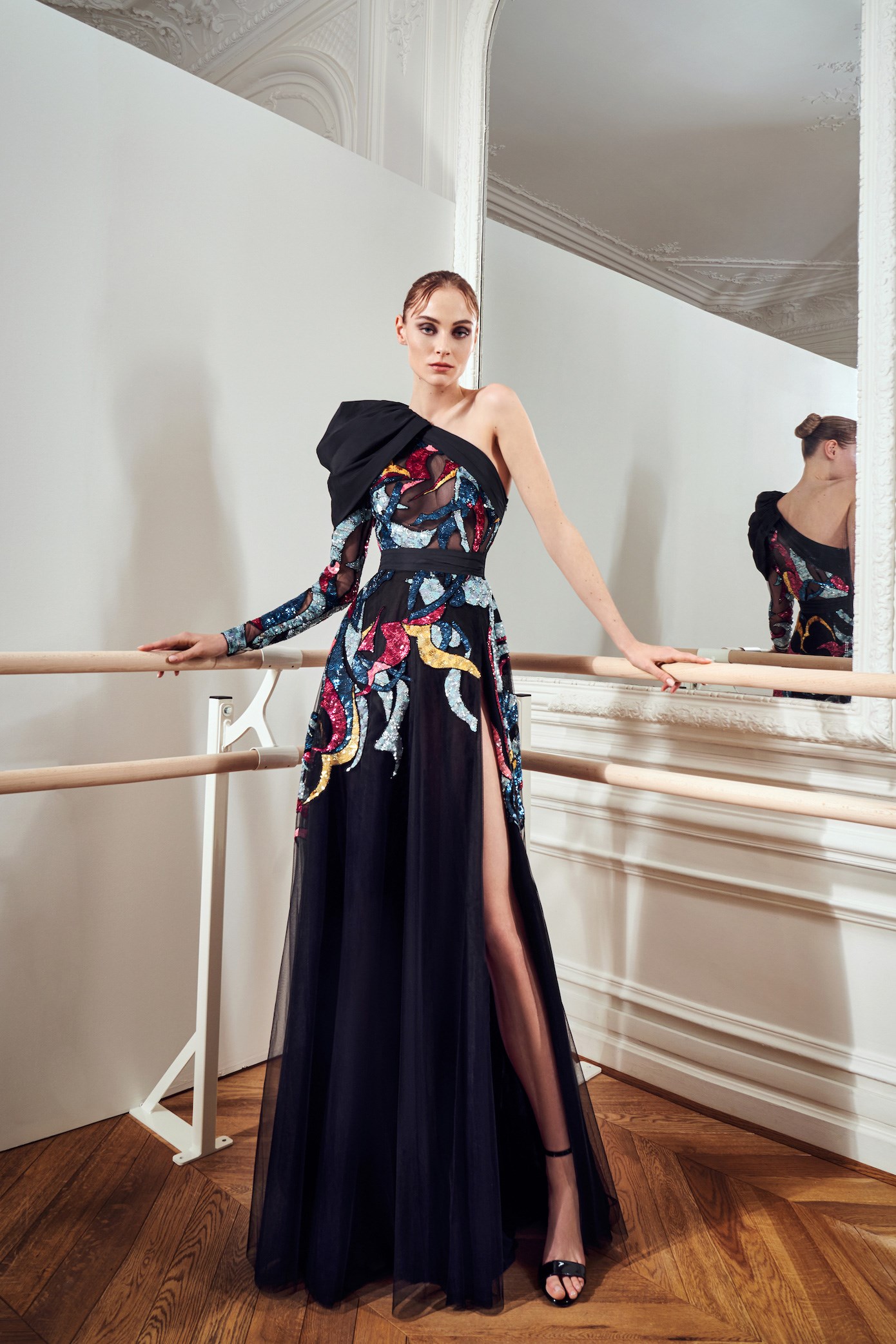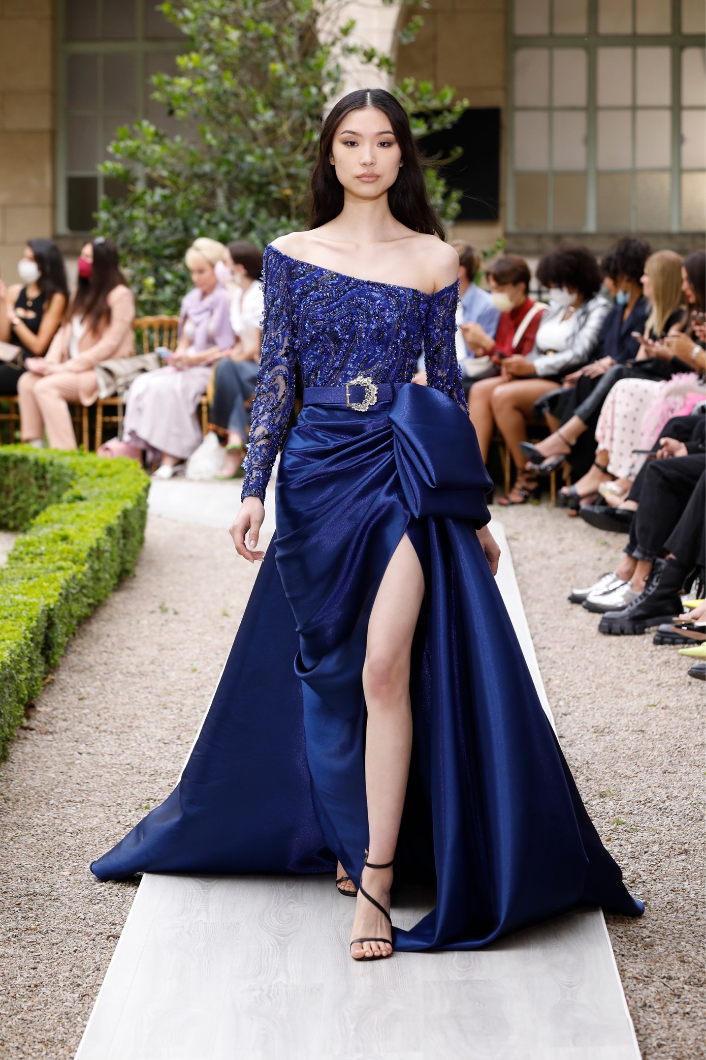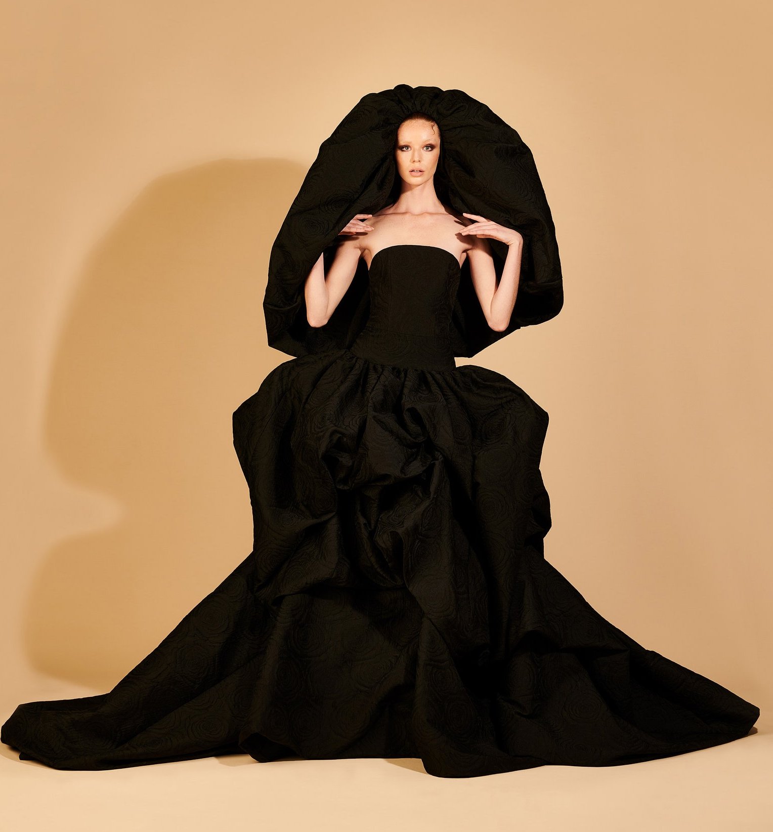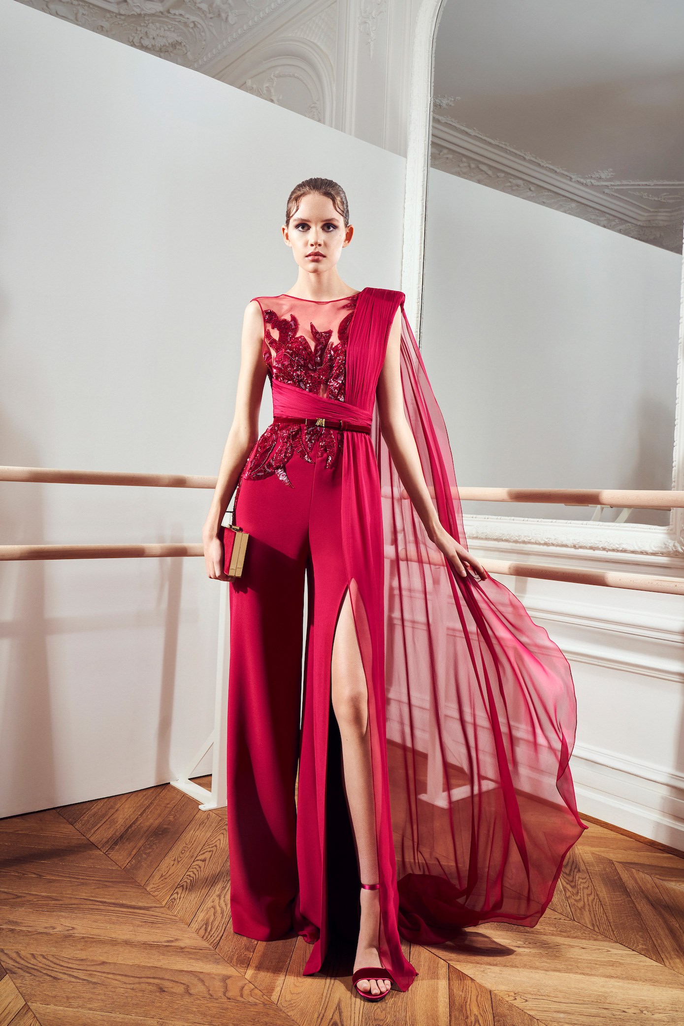 Details: Peplum Ruffles. Squiggly Vertical Layers. Silk Suits. Cutouts. Puff Sleeves, Ball Gowns. Wavy Tulle. Floral Applique. Eye Motifs.