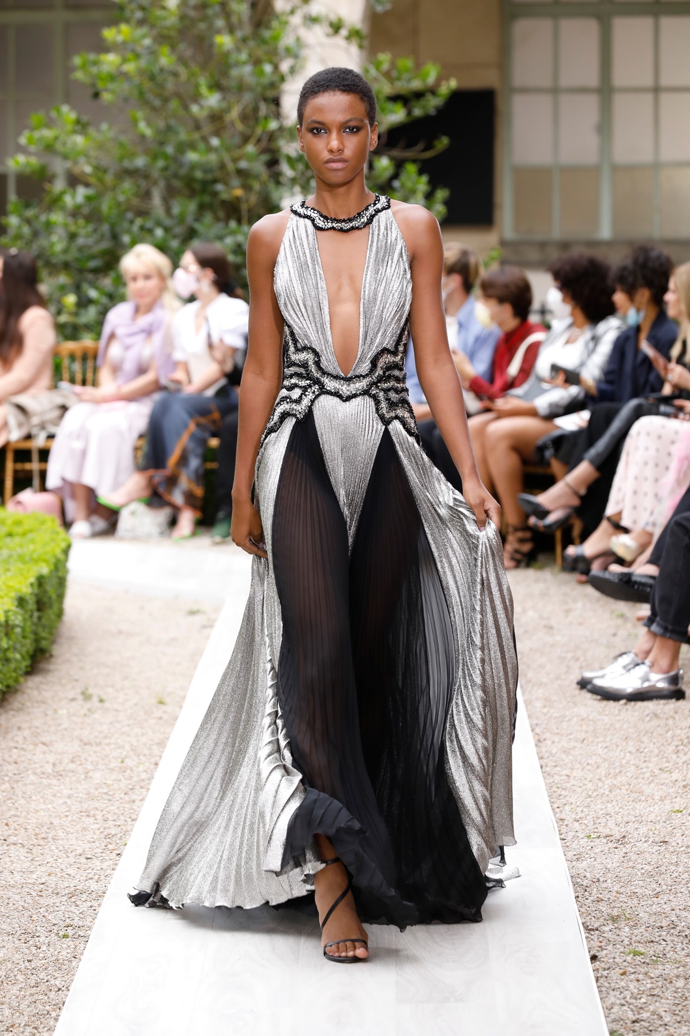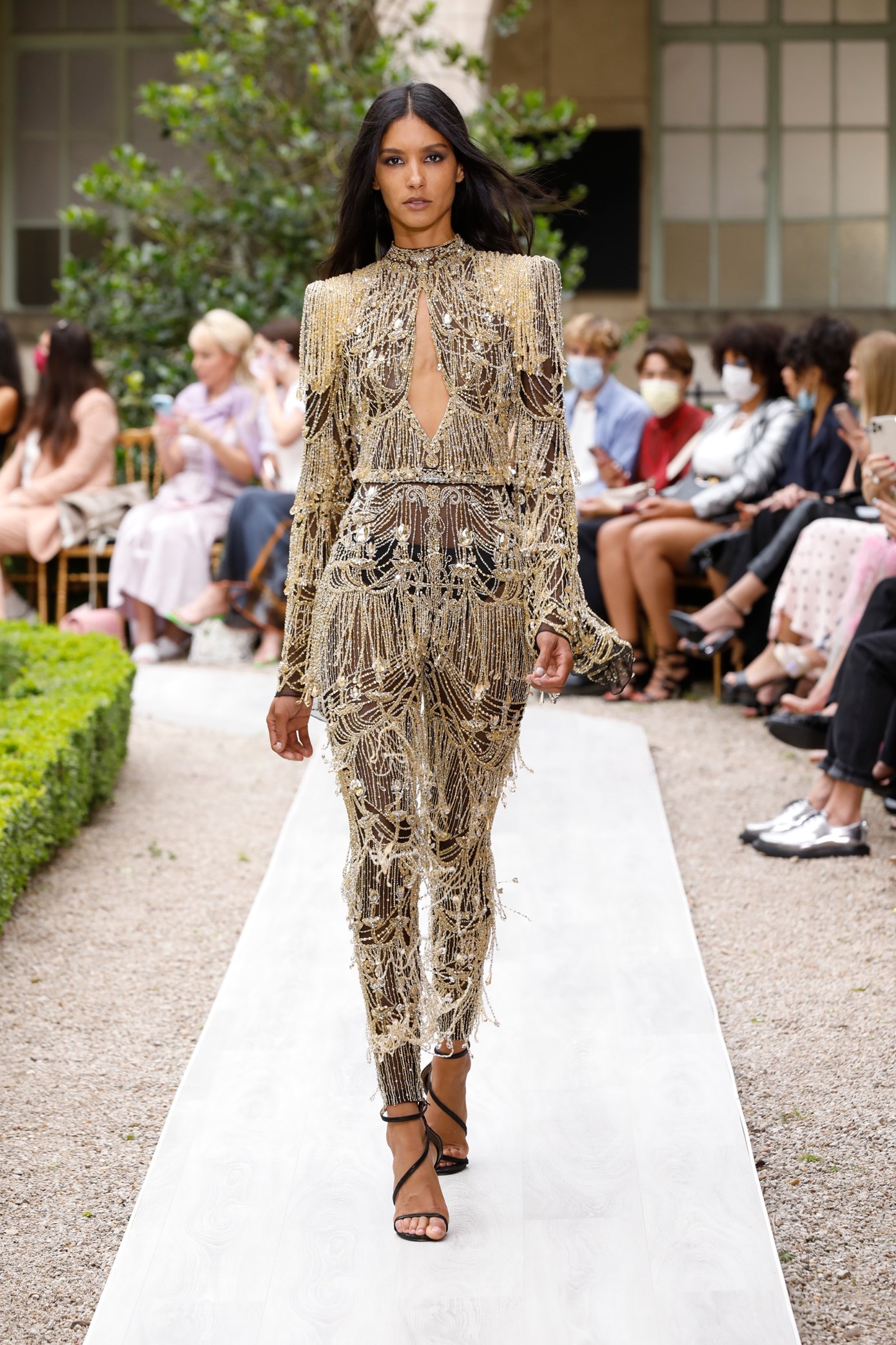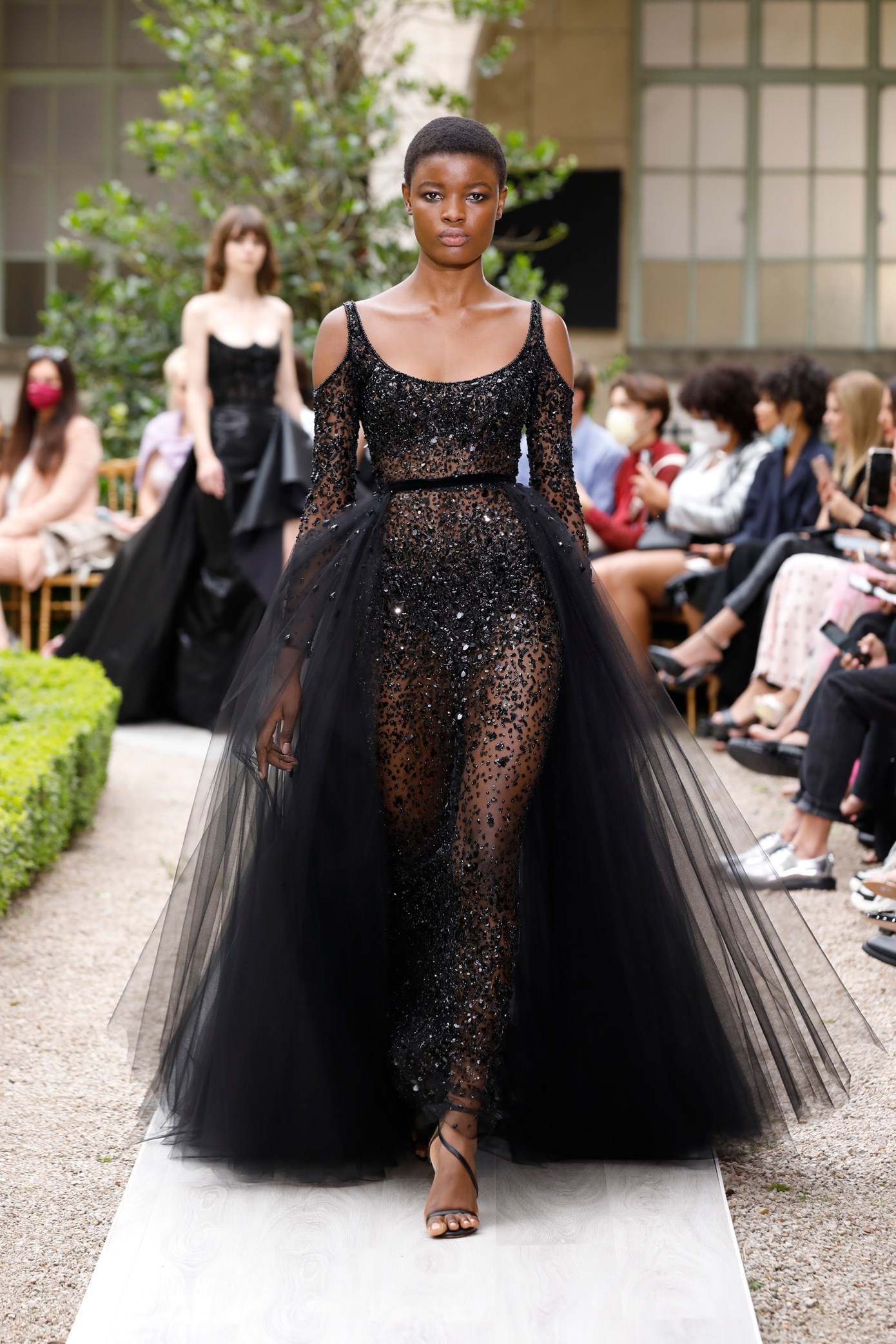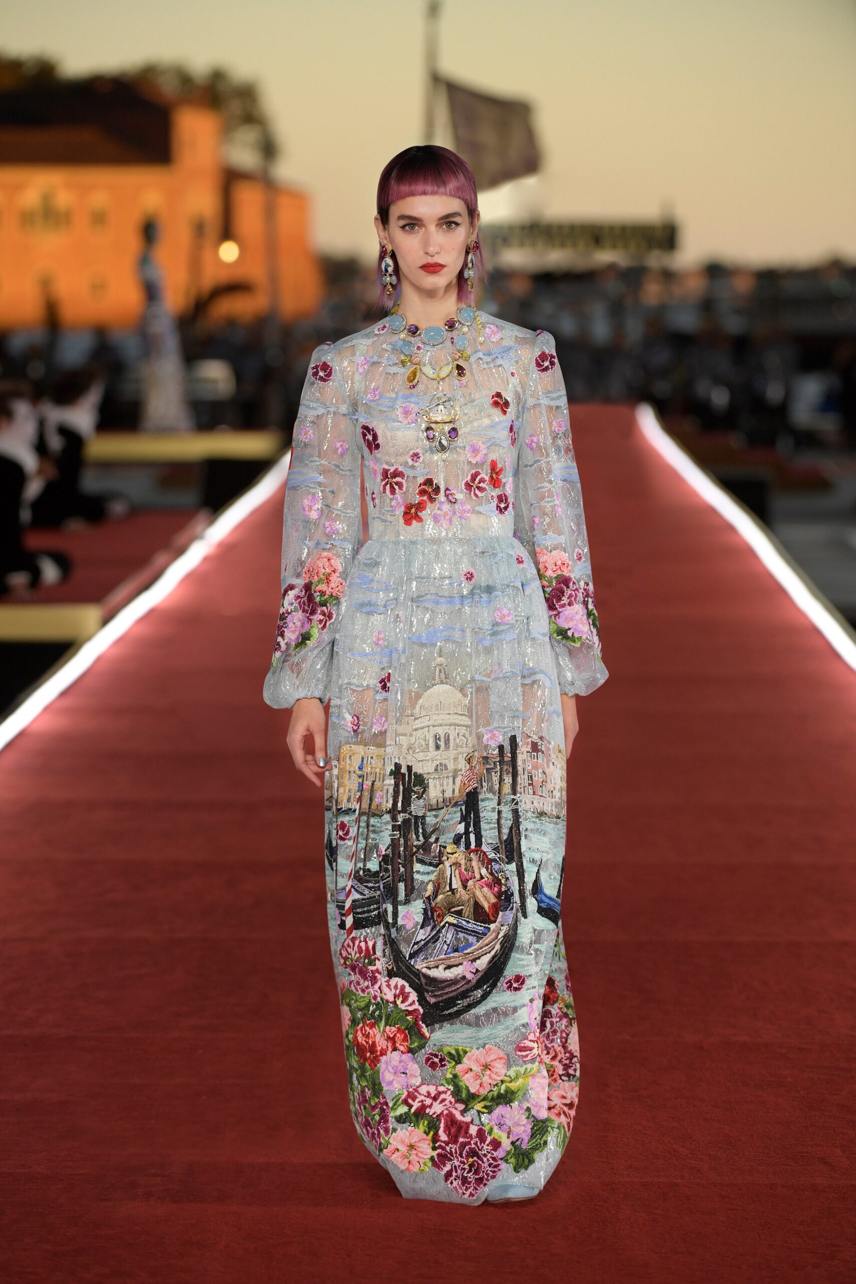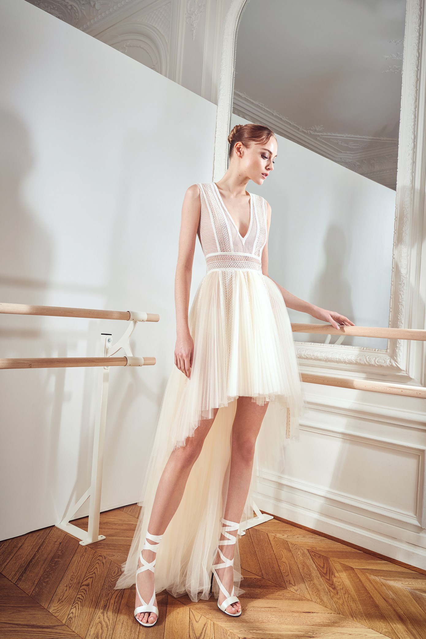 Details: Peplum Ruffles. Squiggly Vertical Layers. Silk Suits. Cutouts. Puff Sleeves, Ball Gowns. Wavy Tulle. Floral Applique. Eye Motifs.