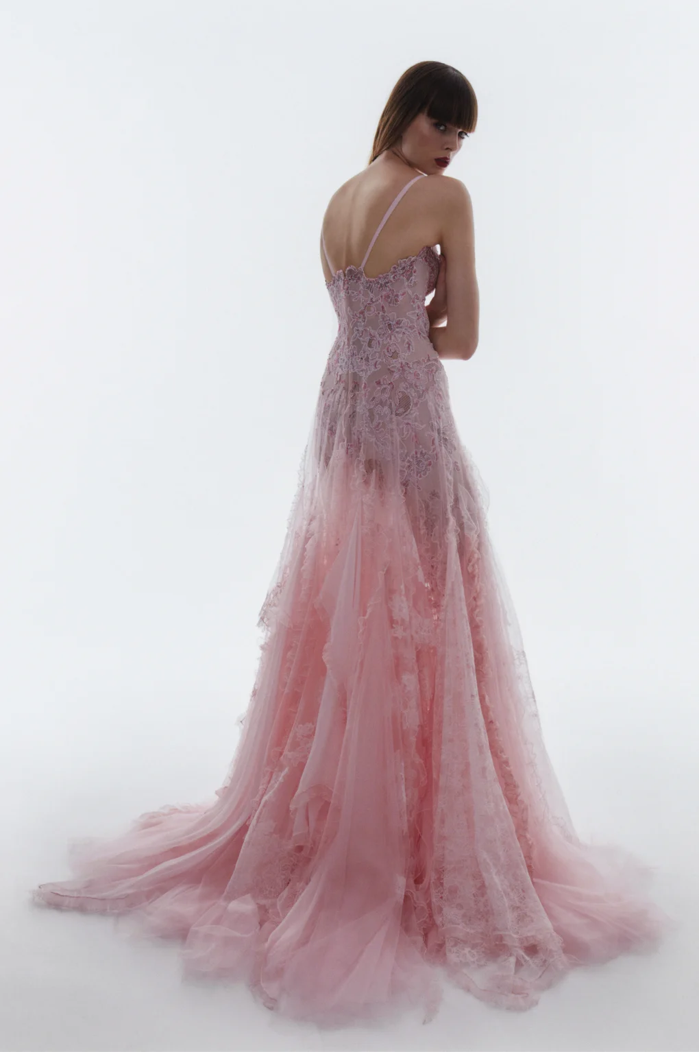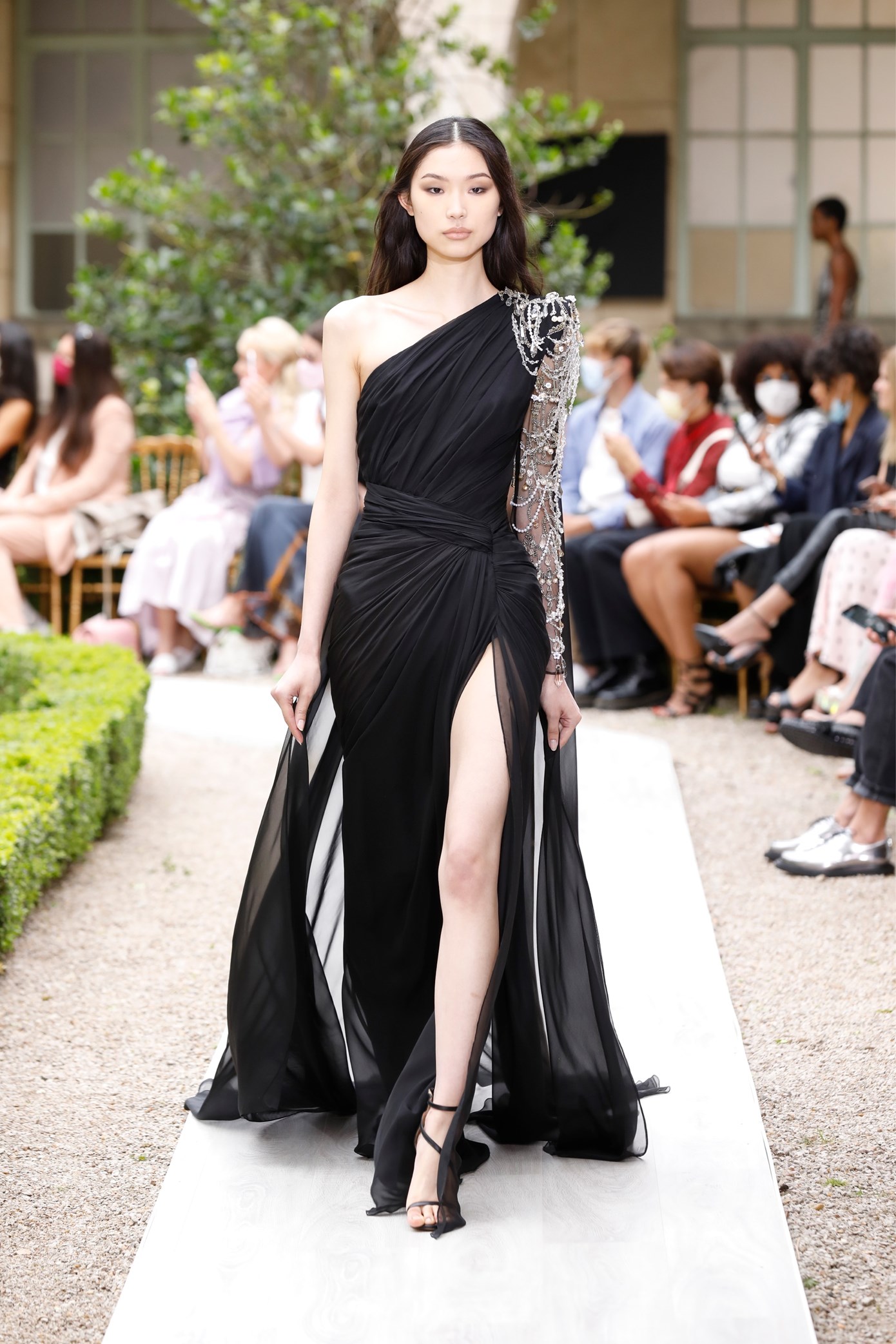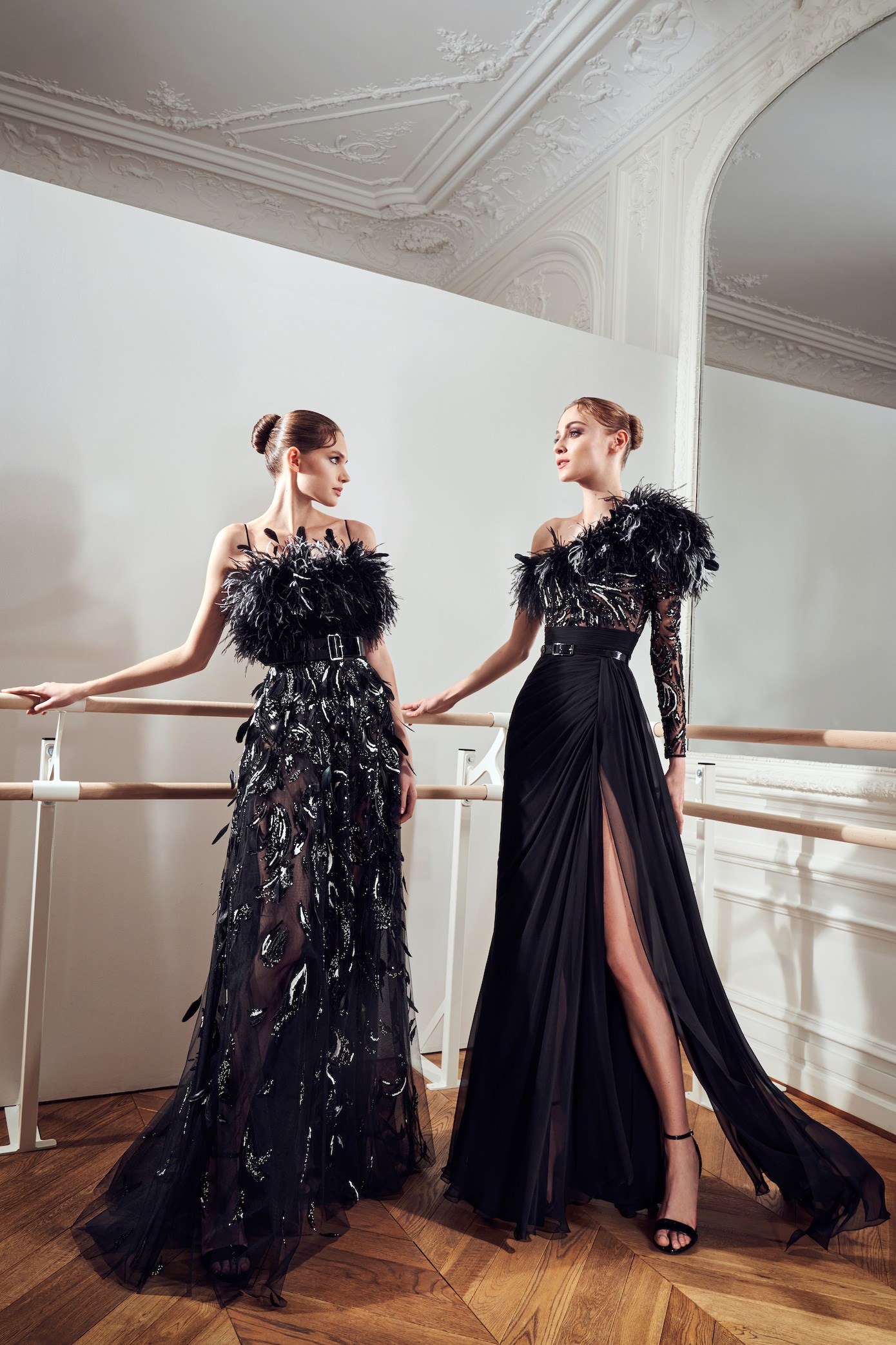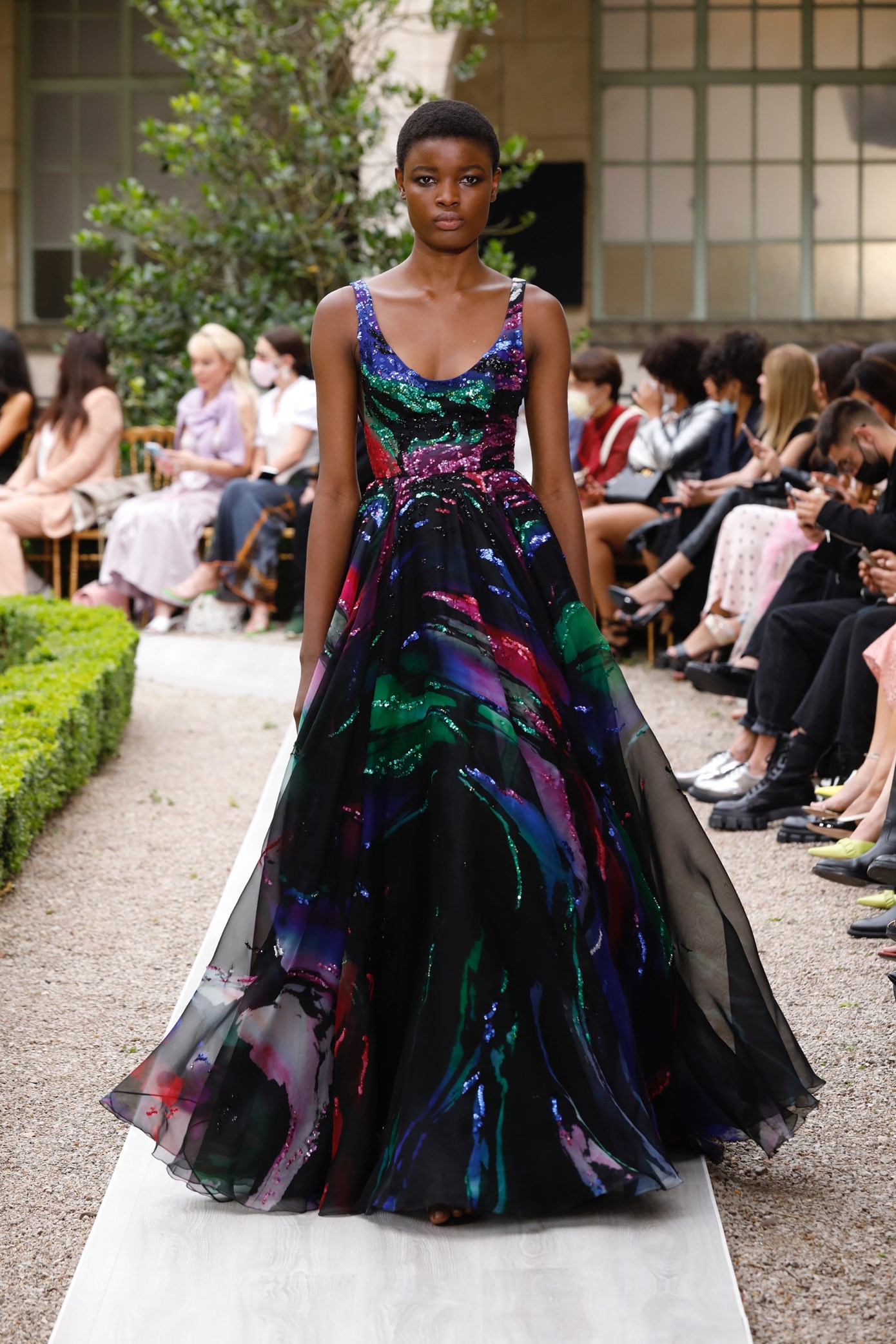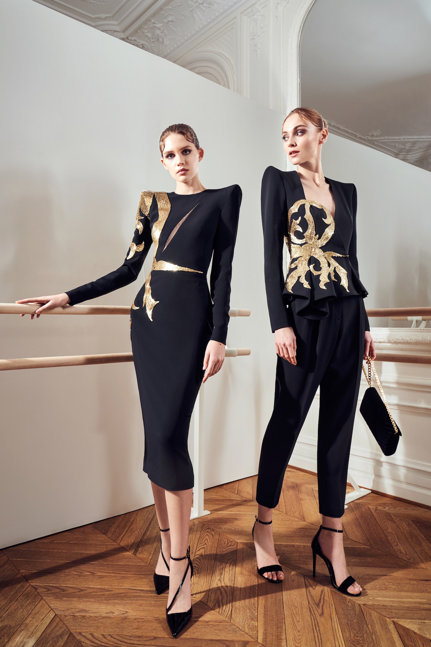 Details: Peplum Ruffles. Squiggly Vertical Layers. Silk Suits. Cutouts. Puff Sleeves, Ball Gowns. Wavy Tulle. Floral Applique. Eye Motifs.