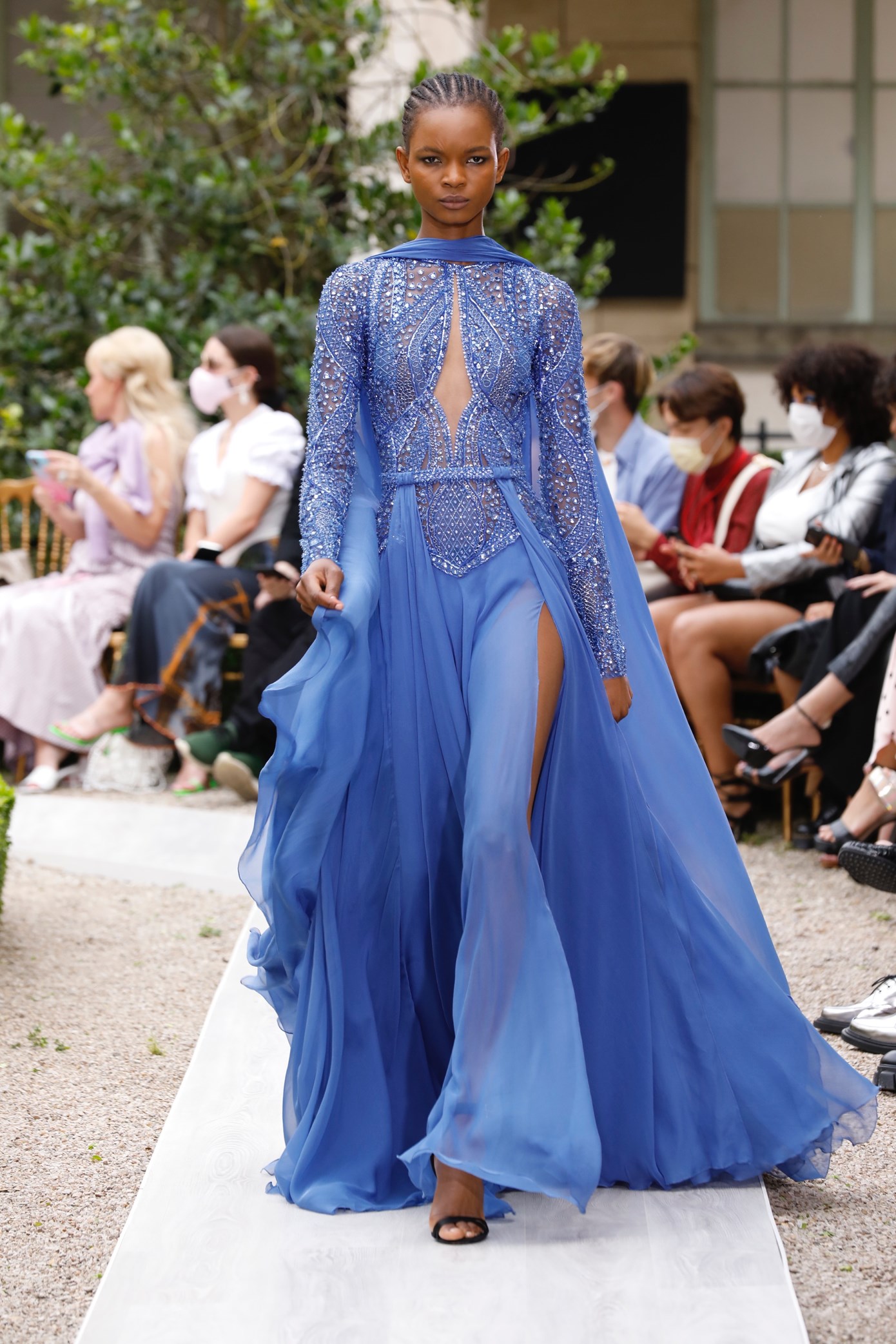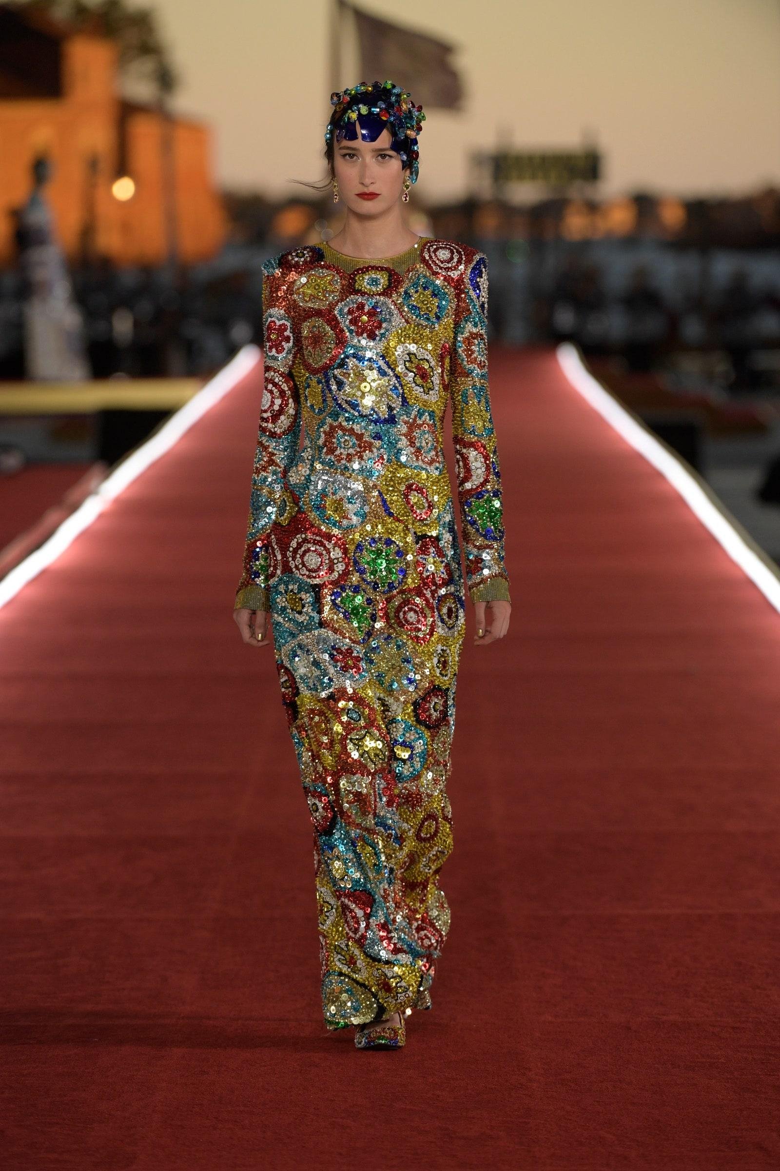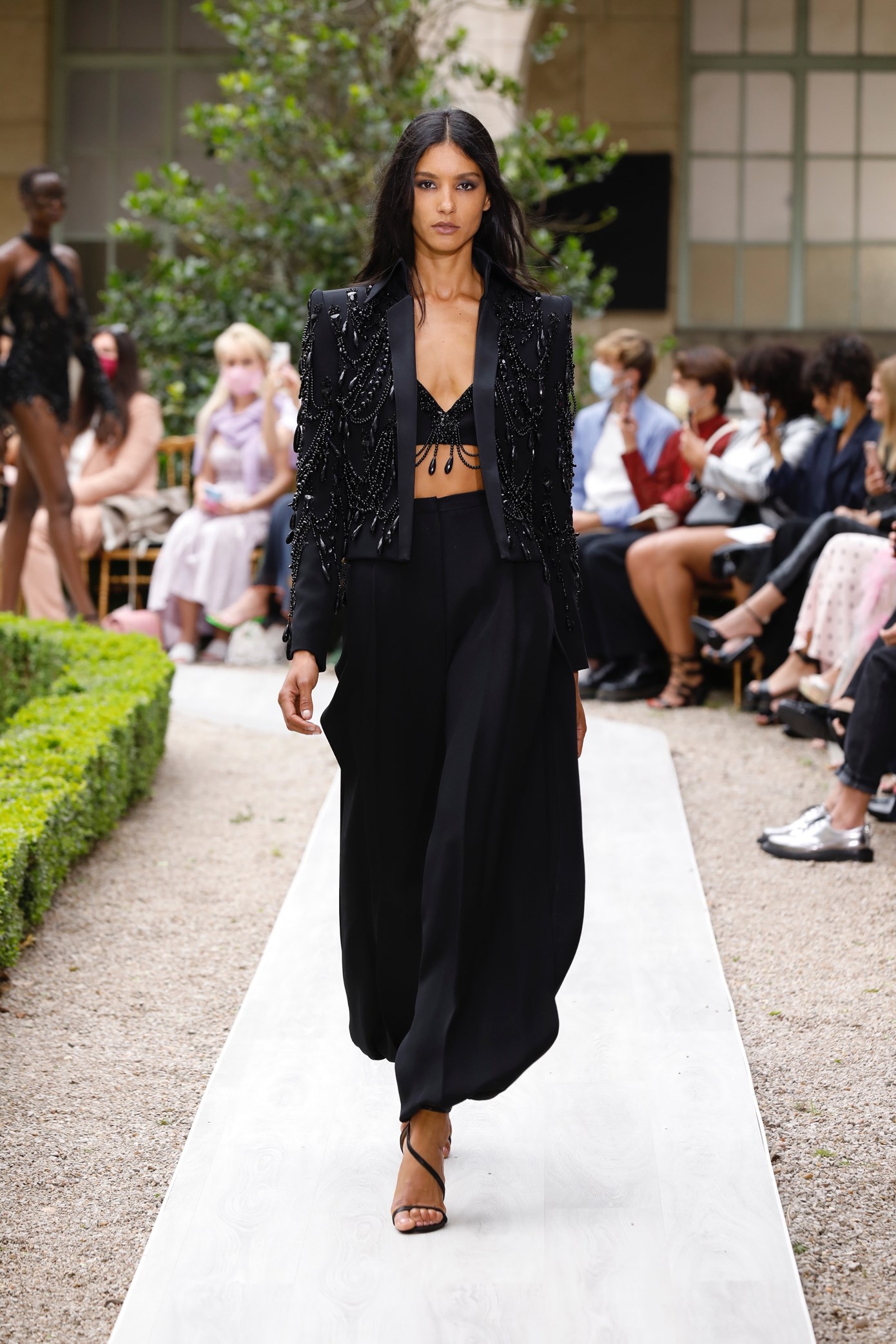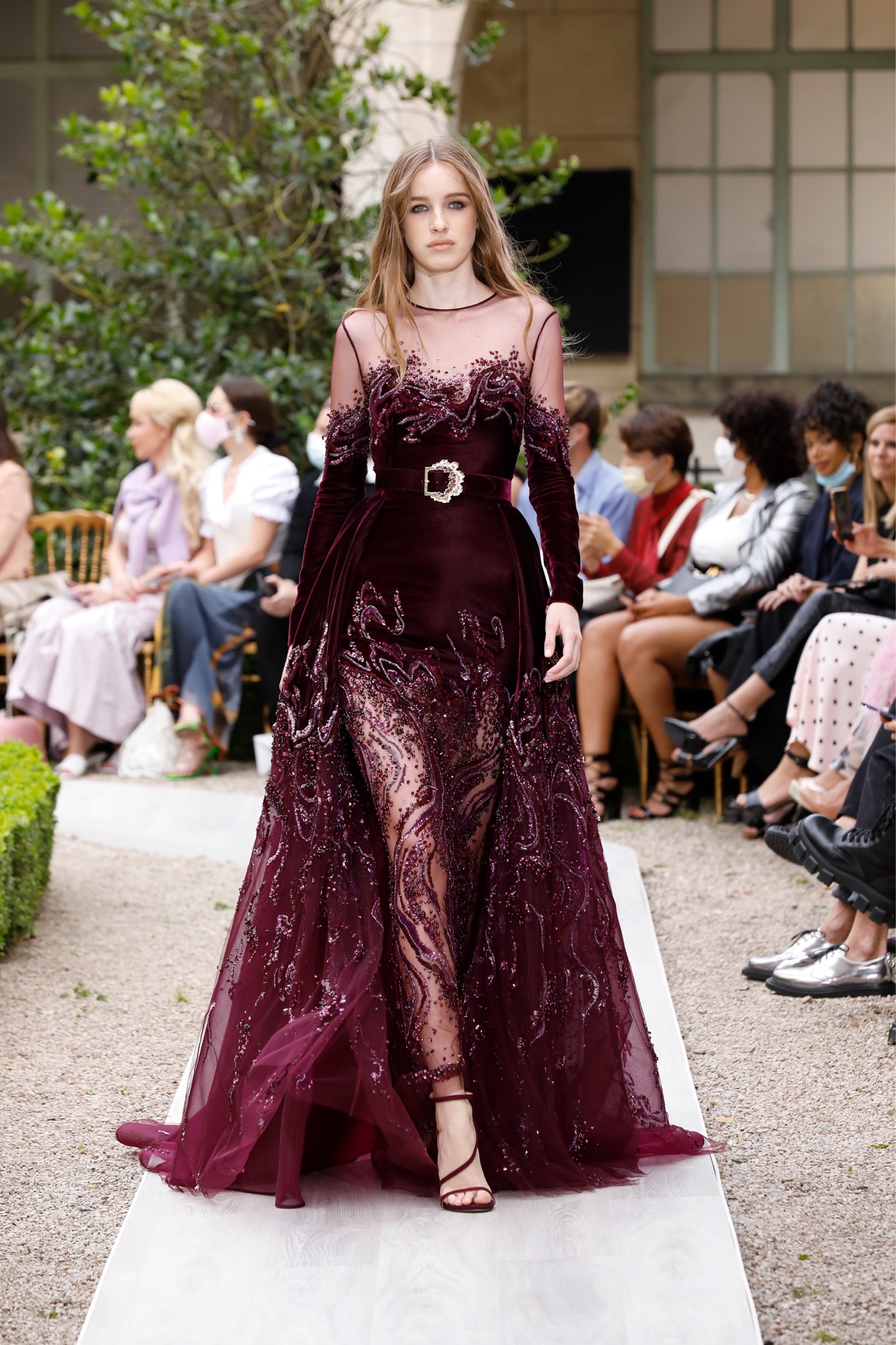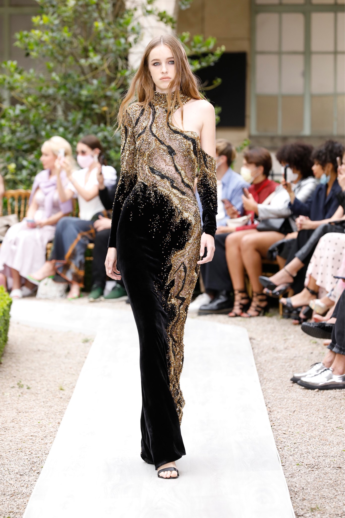 Details: Peplum Ruffles. Squiggly Vertical Layers. Silk Suits. Cutouts. Puff Sleeves, Ball Gowns. Wavy Tulle. Floral Applique. Eye Motifs.