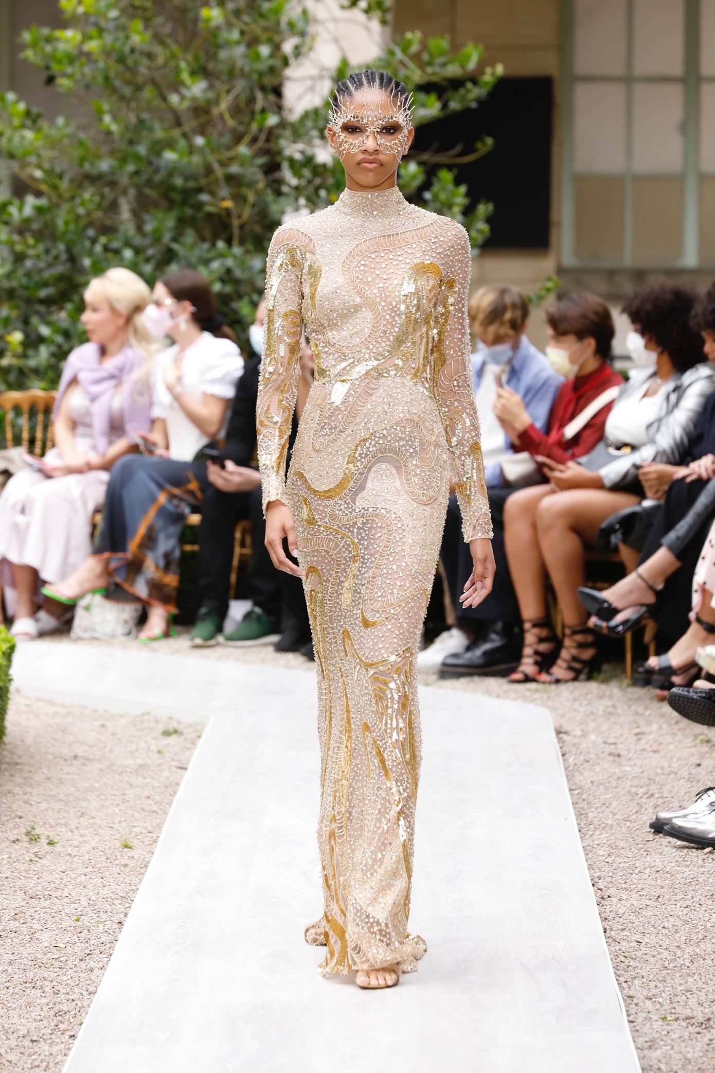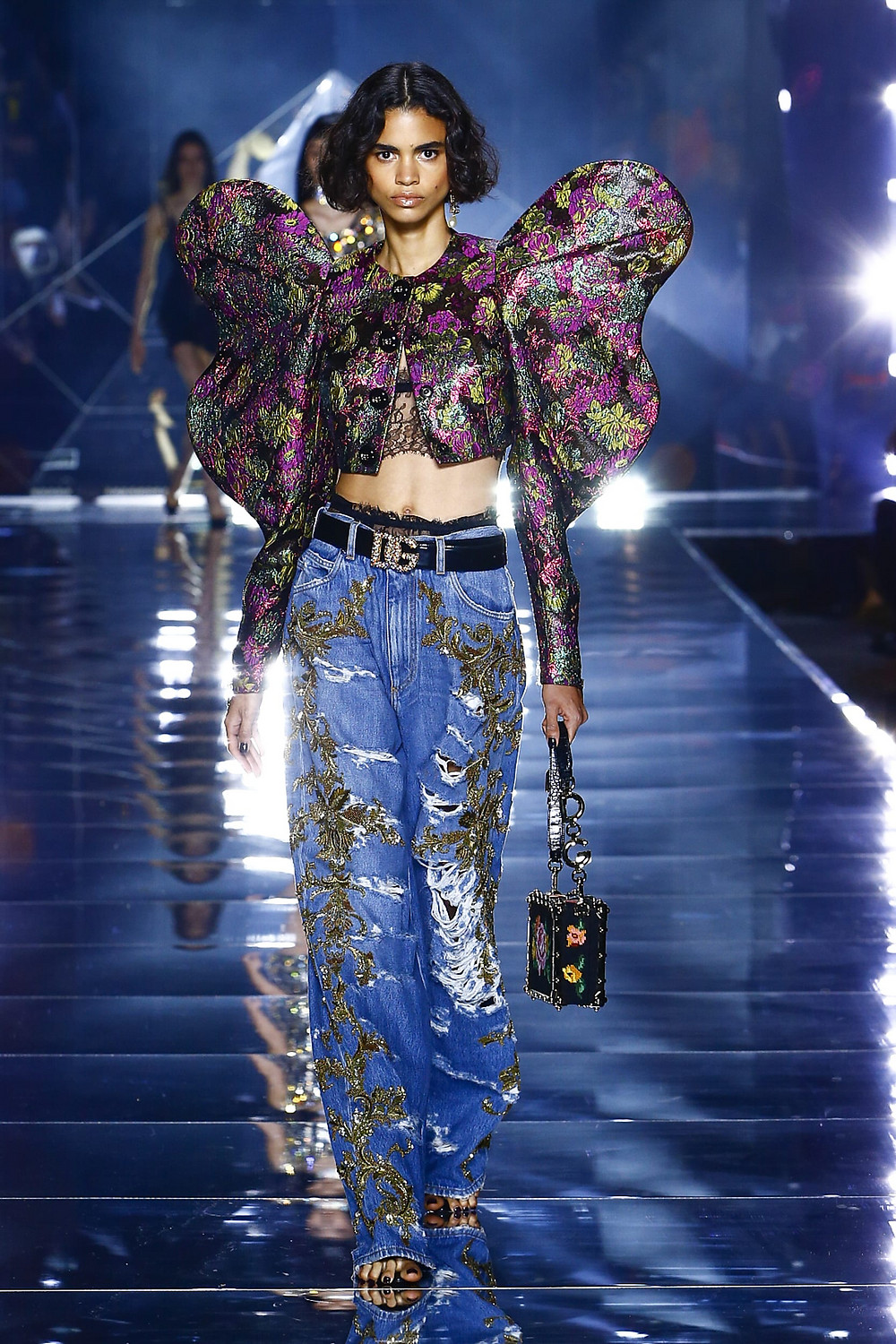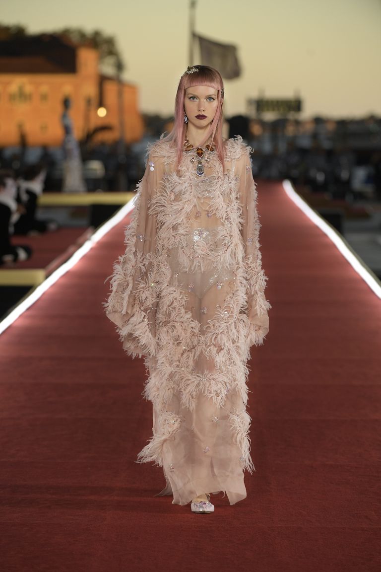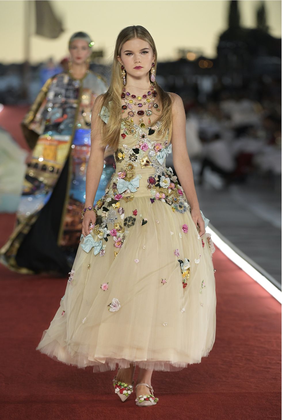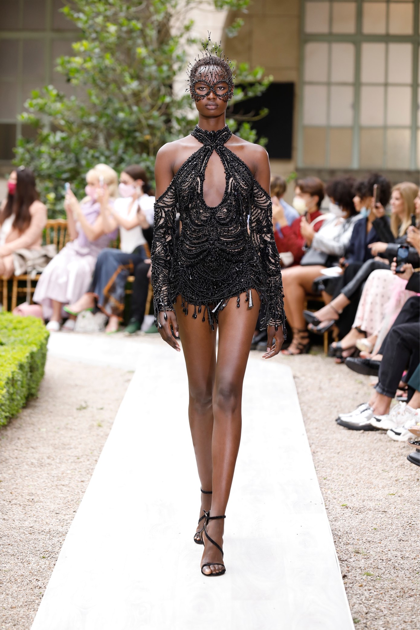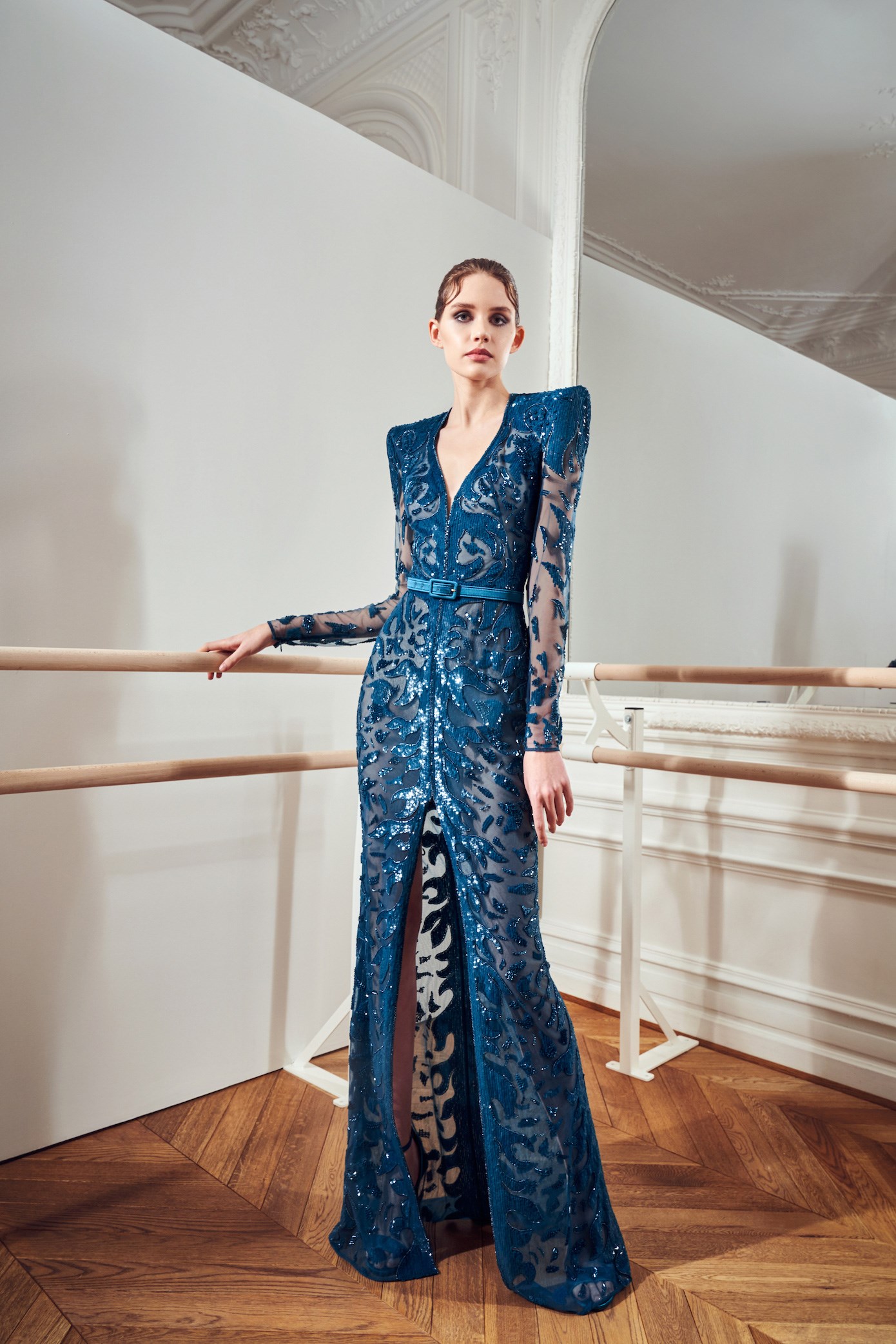 Details: Peplum Ruffles. Squiggly Vertical Layers. Silk Suits. Cutouts. Puff Sleeves, Ball Gowns. Wavy Tulle. Floral Applique. Eye Motifs.