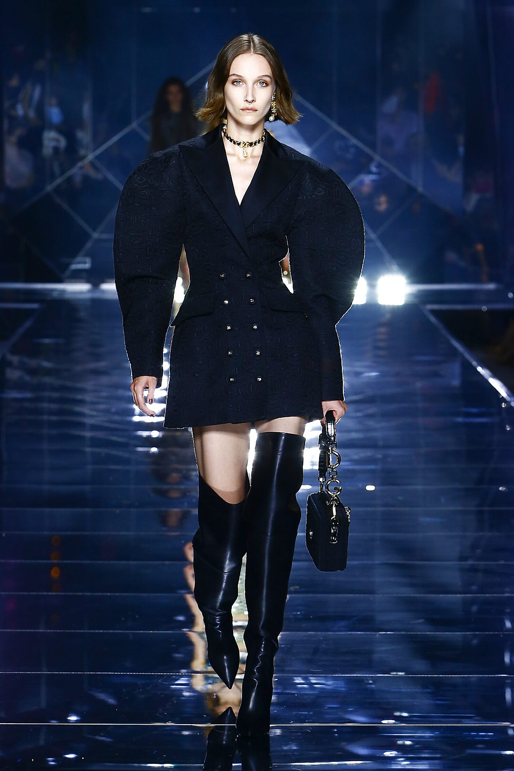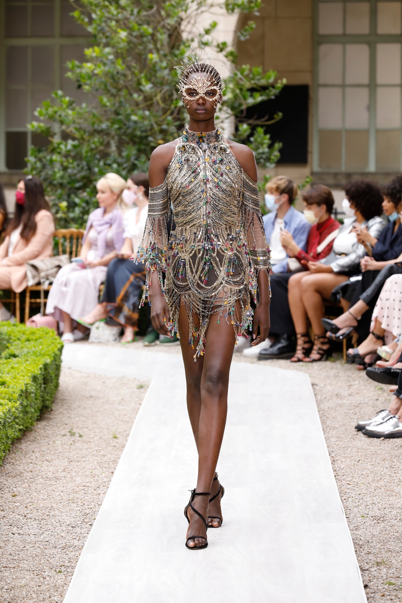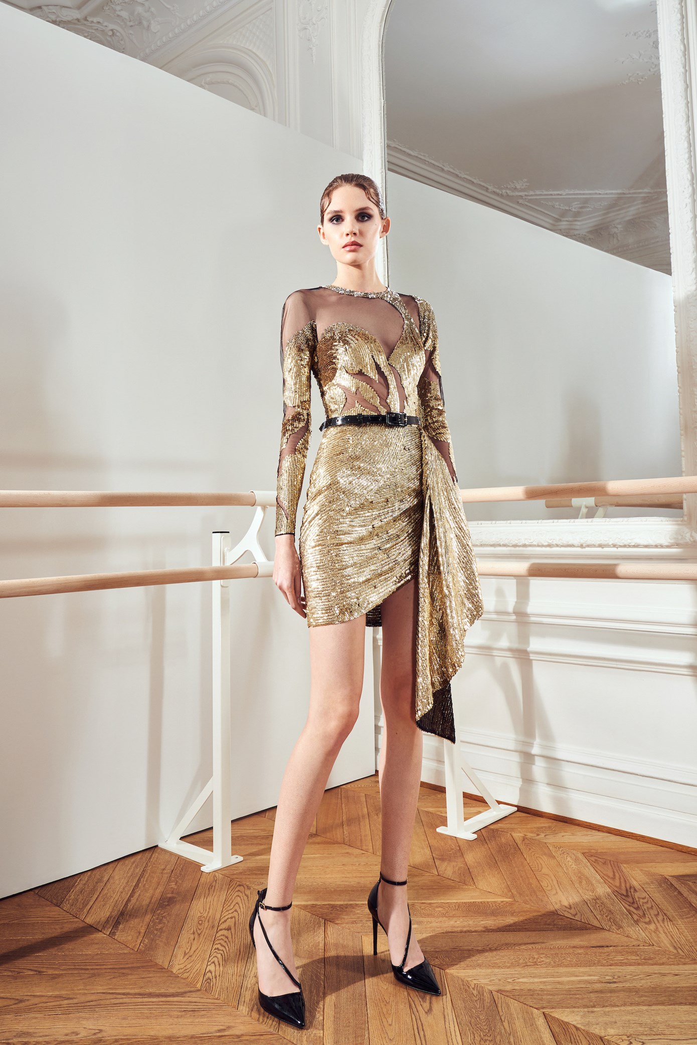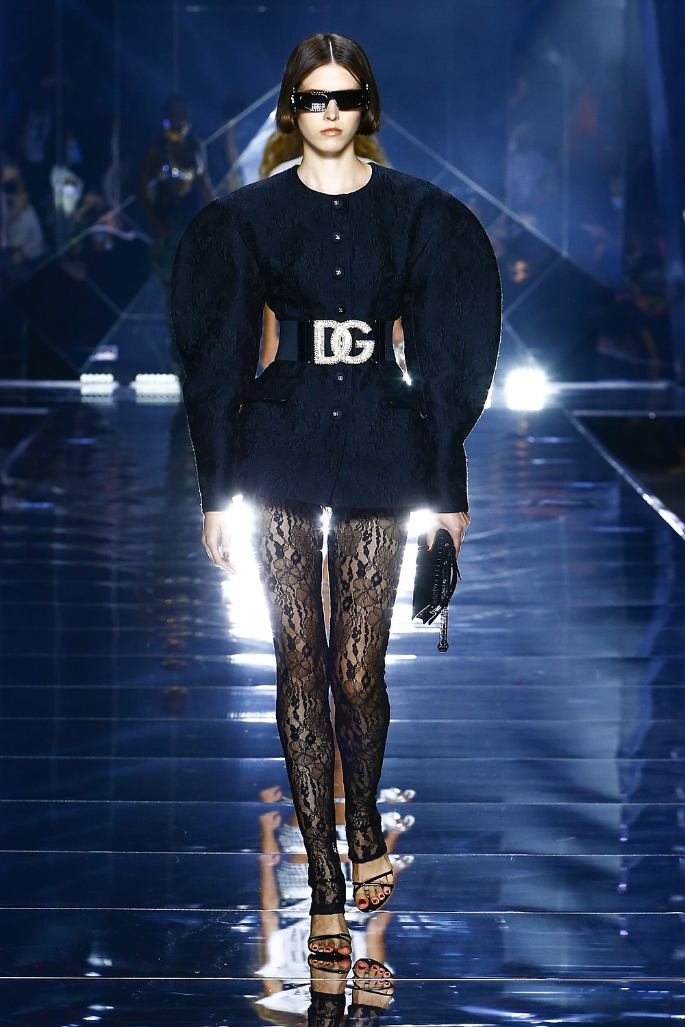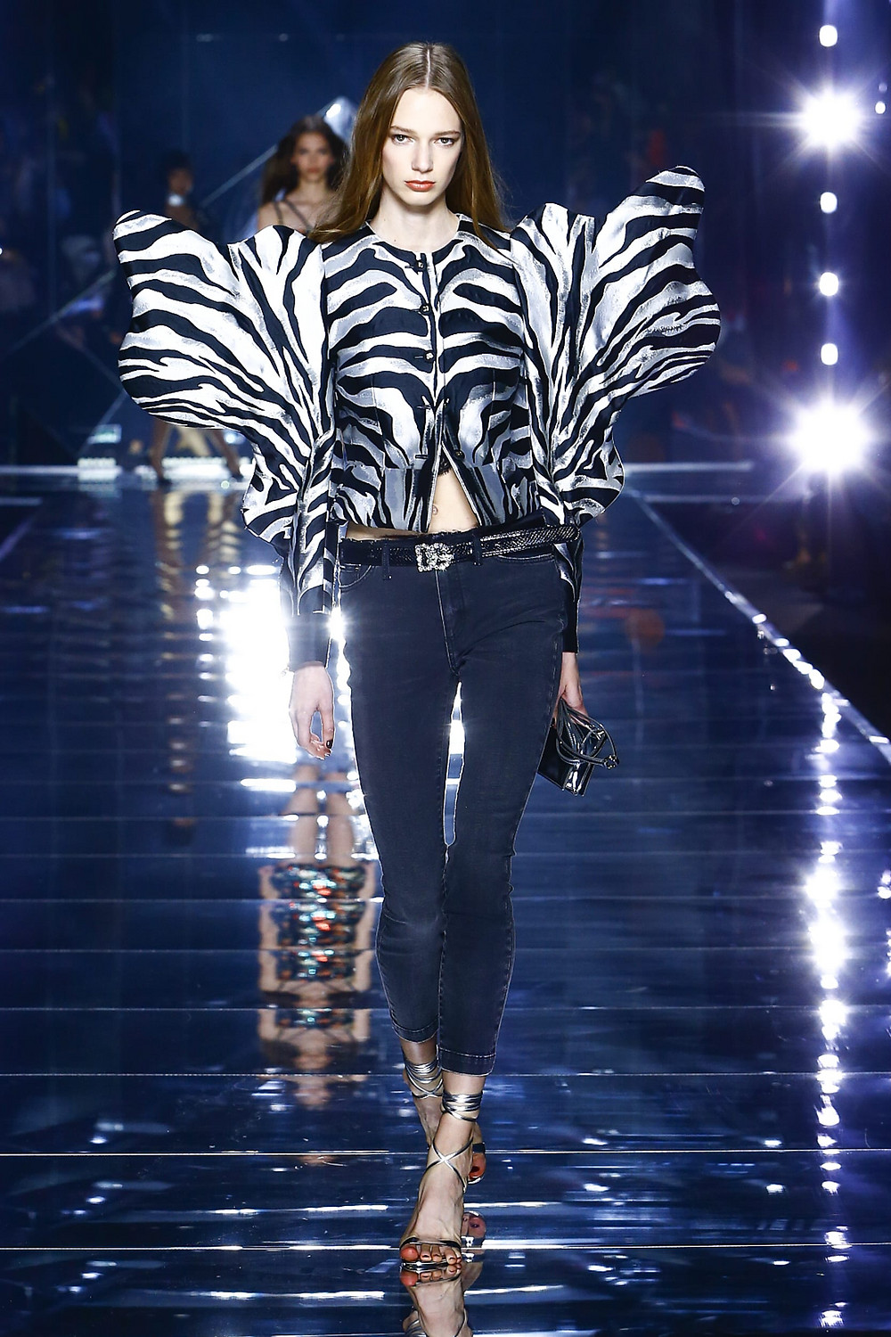 Details: Peplum Ruffles. Squiggly Vertical Layers. Silk Suits. Cutouts. Puff Sleeves, Ball Gowns. Wavy Tulle. Floral Applique. Eye Motifs.