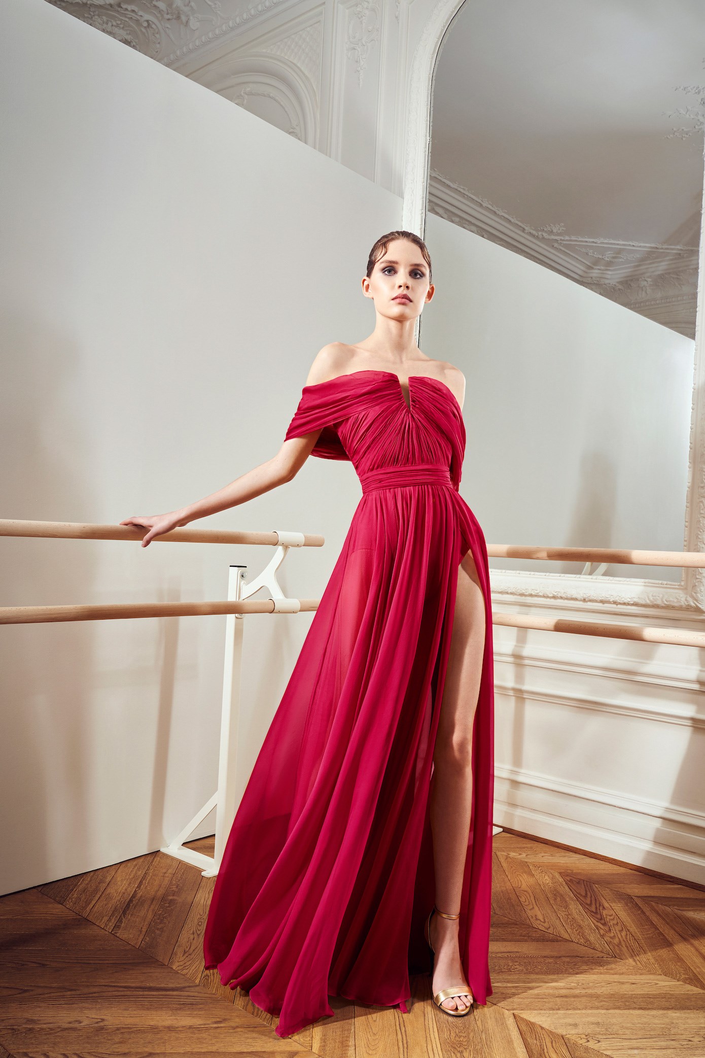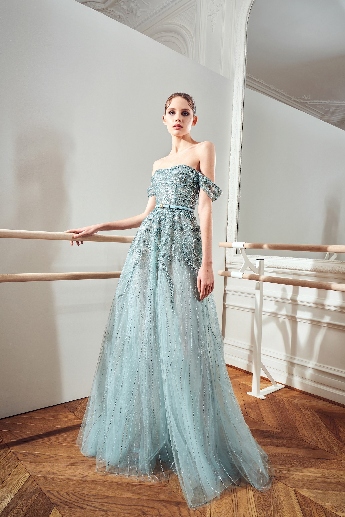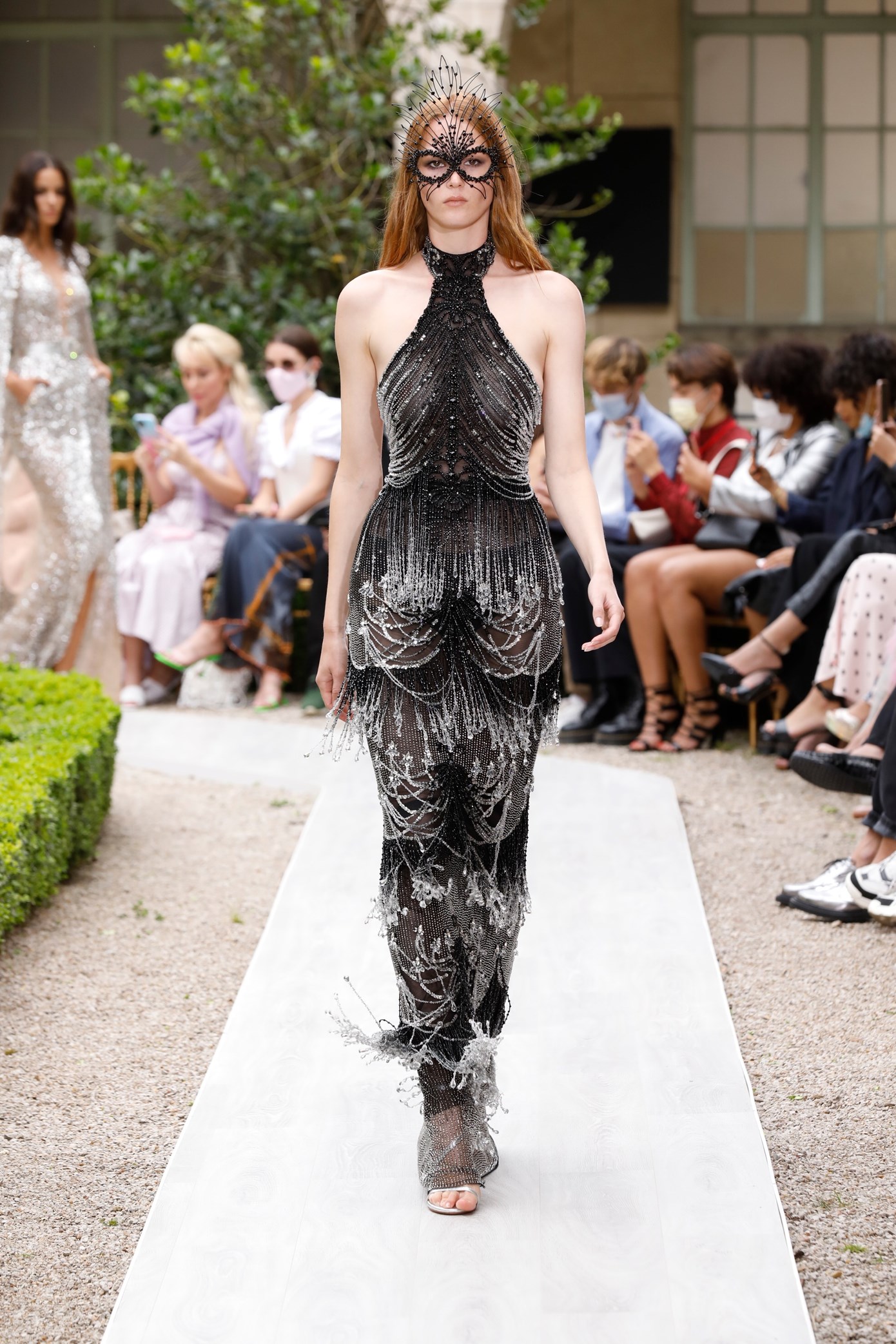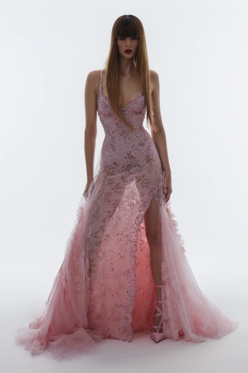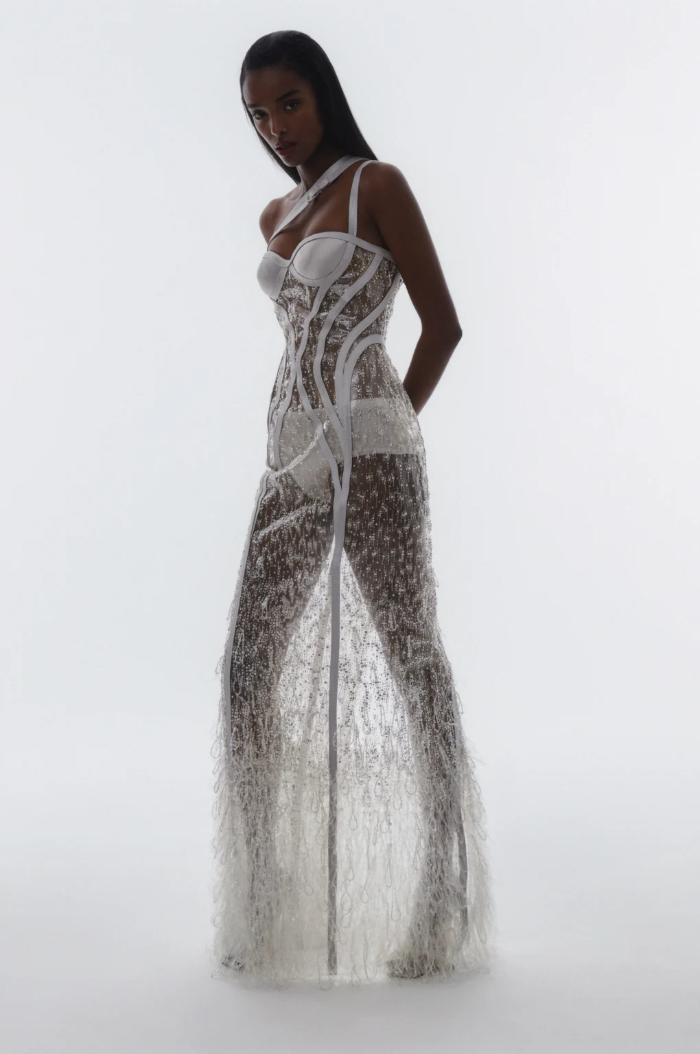 Details: Peplum Ruffles. Squiggly Vertical Layers. Silk Suits. Cutouts. Puff Sleeves, Ball Gowns. Wavy Tulle. Floral Applique. Eye Motifs.