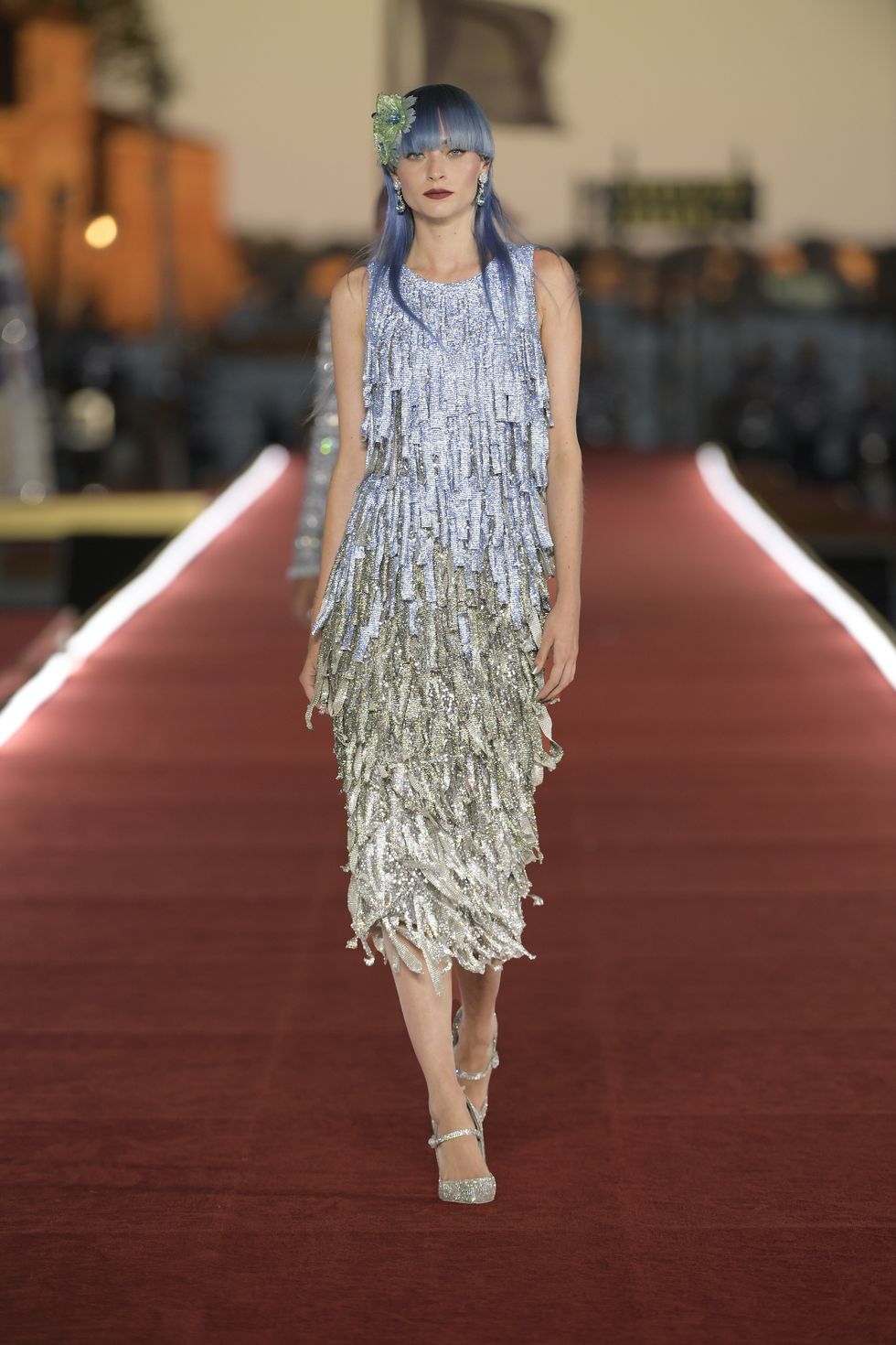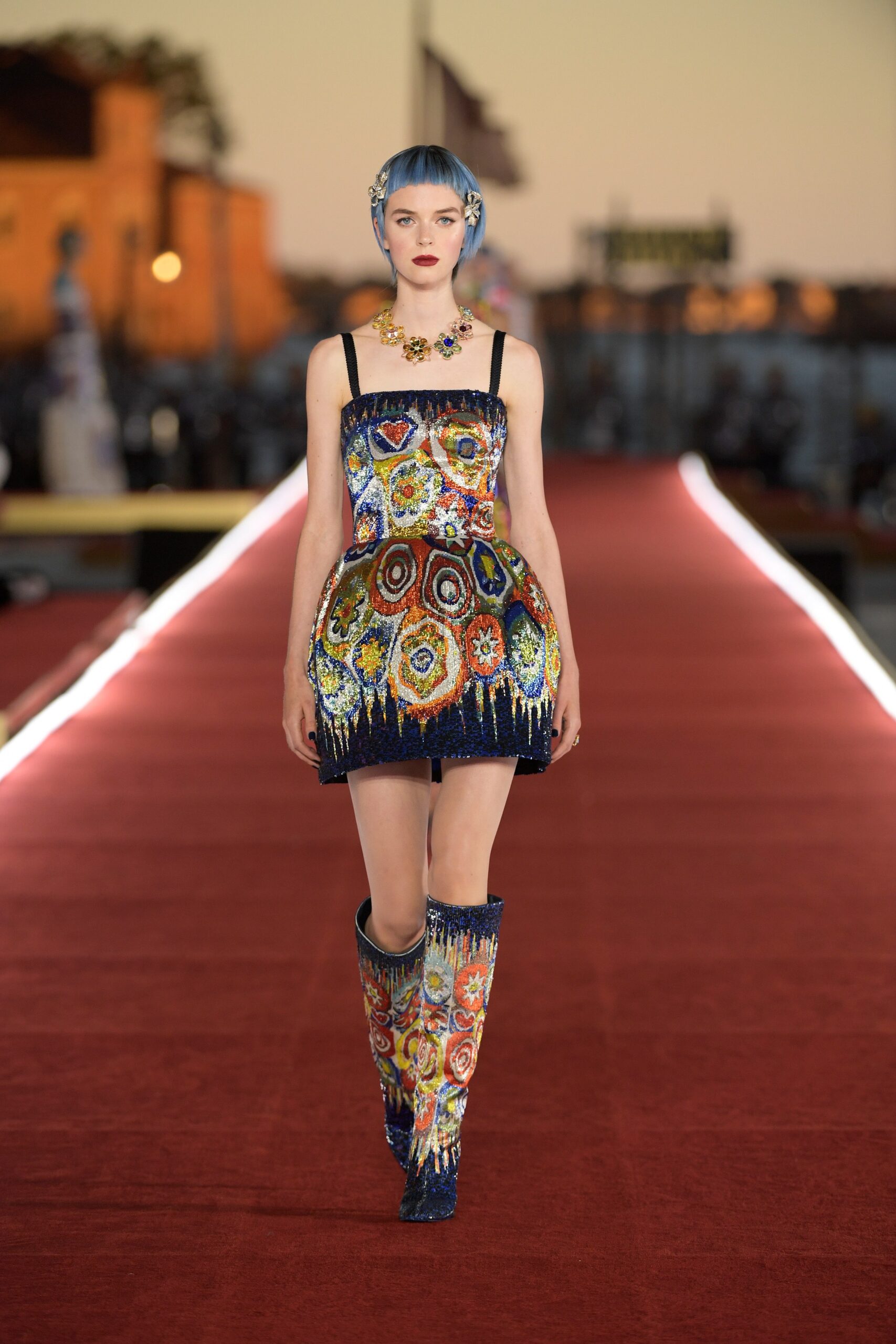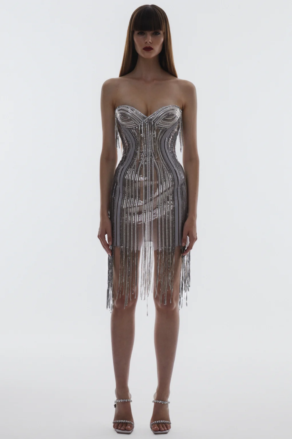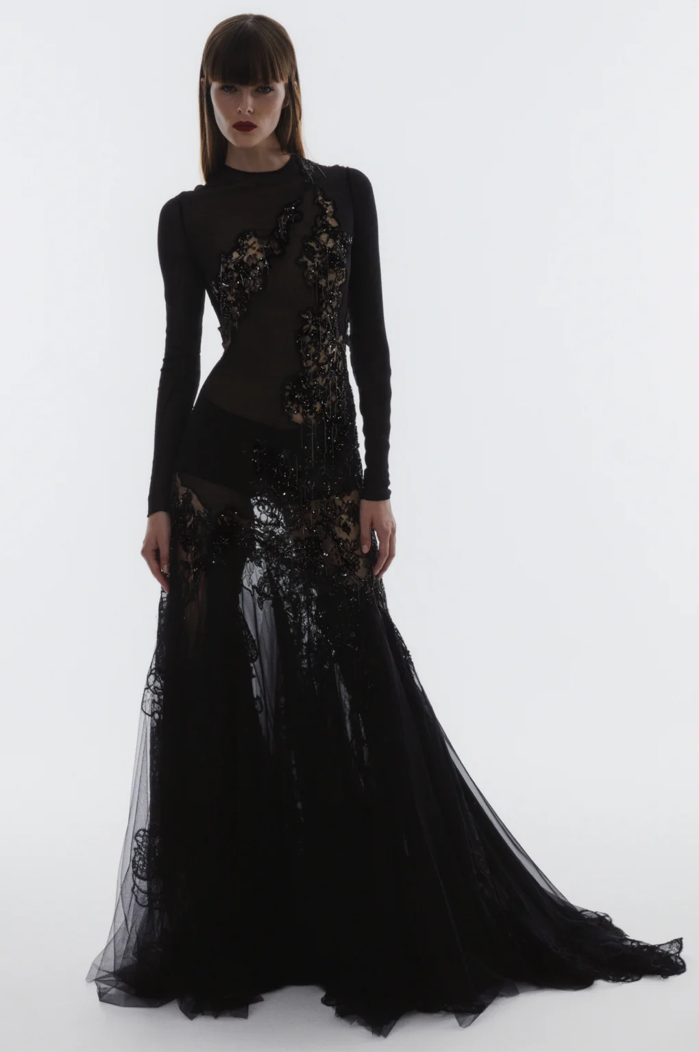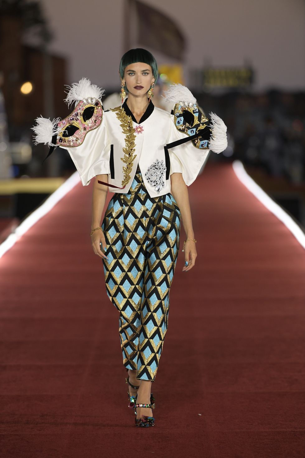 Details: Peplum Ruffles. Squiggly Vertical Layers. Silk Suits. Cutouts. Puff Sleeves, Ball Gowns. Wavy Tulle. Floral Applique. Eye Motifs.