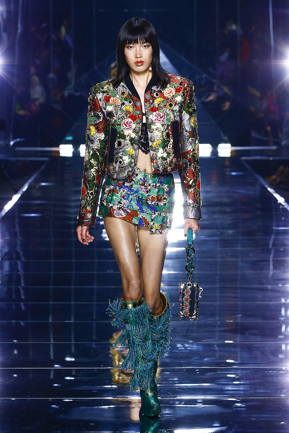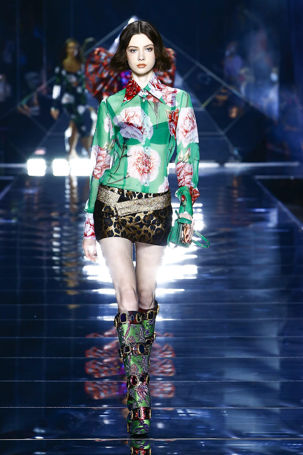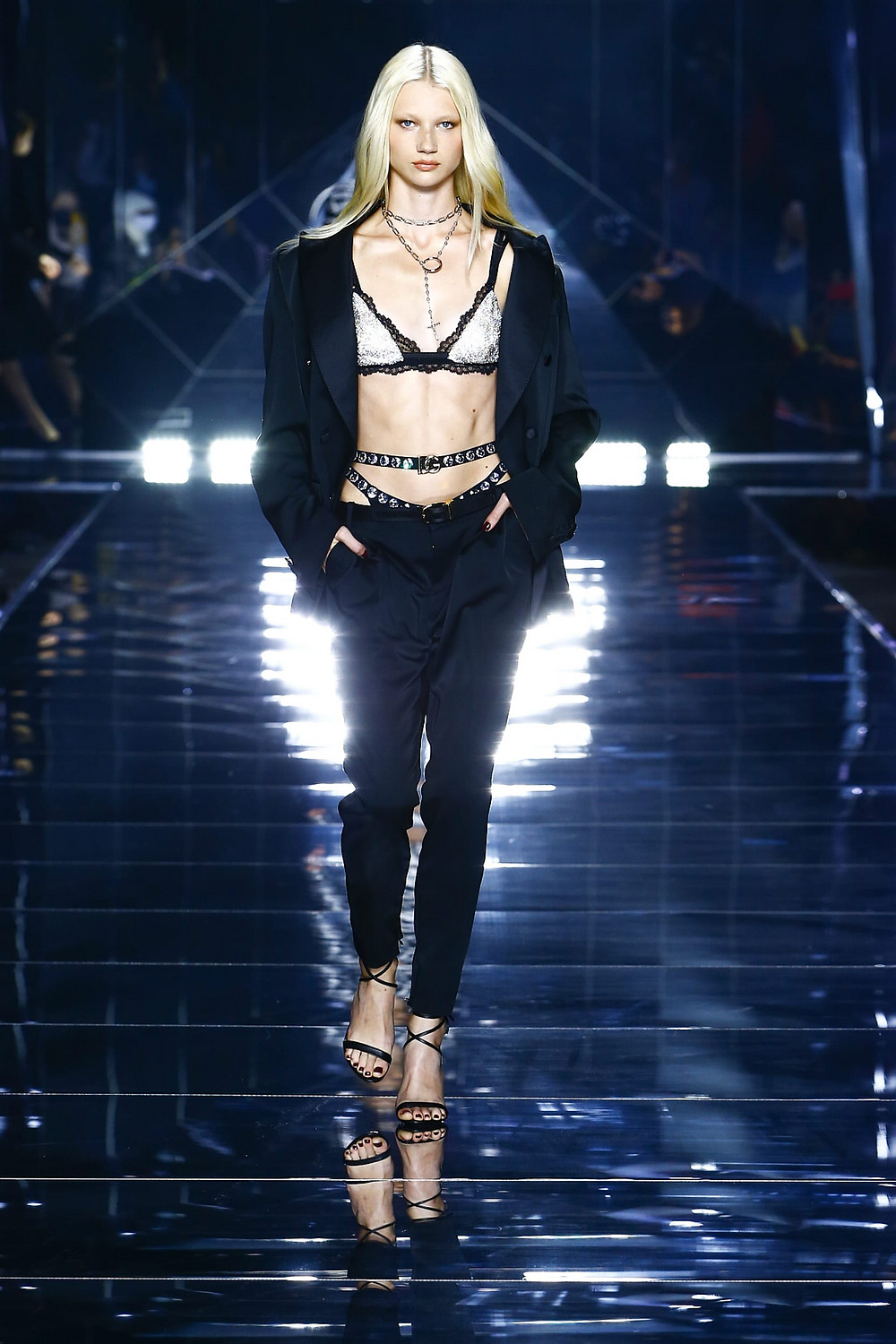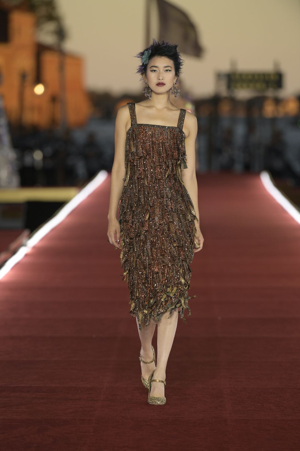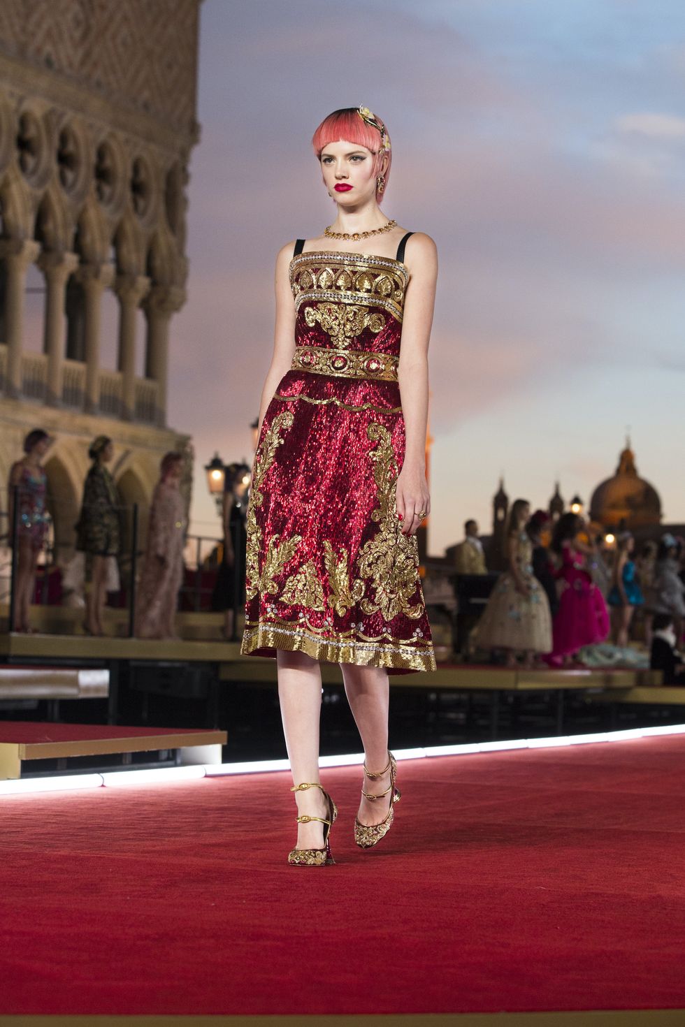Details: Peplum Ruffles. Squiggly Vertical Layers. Silk Suits. Cutouts. Puff Sleeves, Ball Gowns. Wavy Tulle. Floral Applique. Eye Motifs.